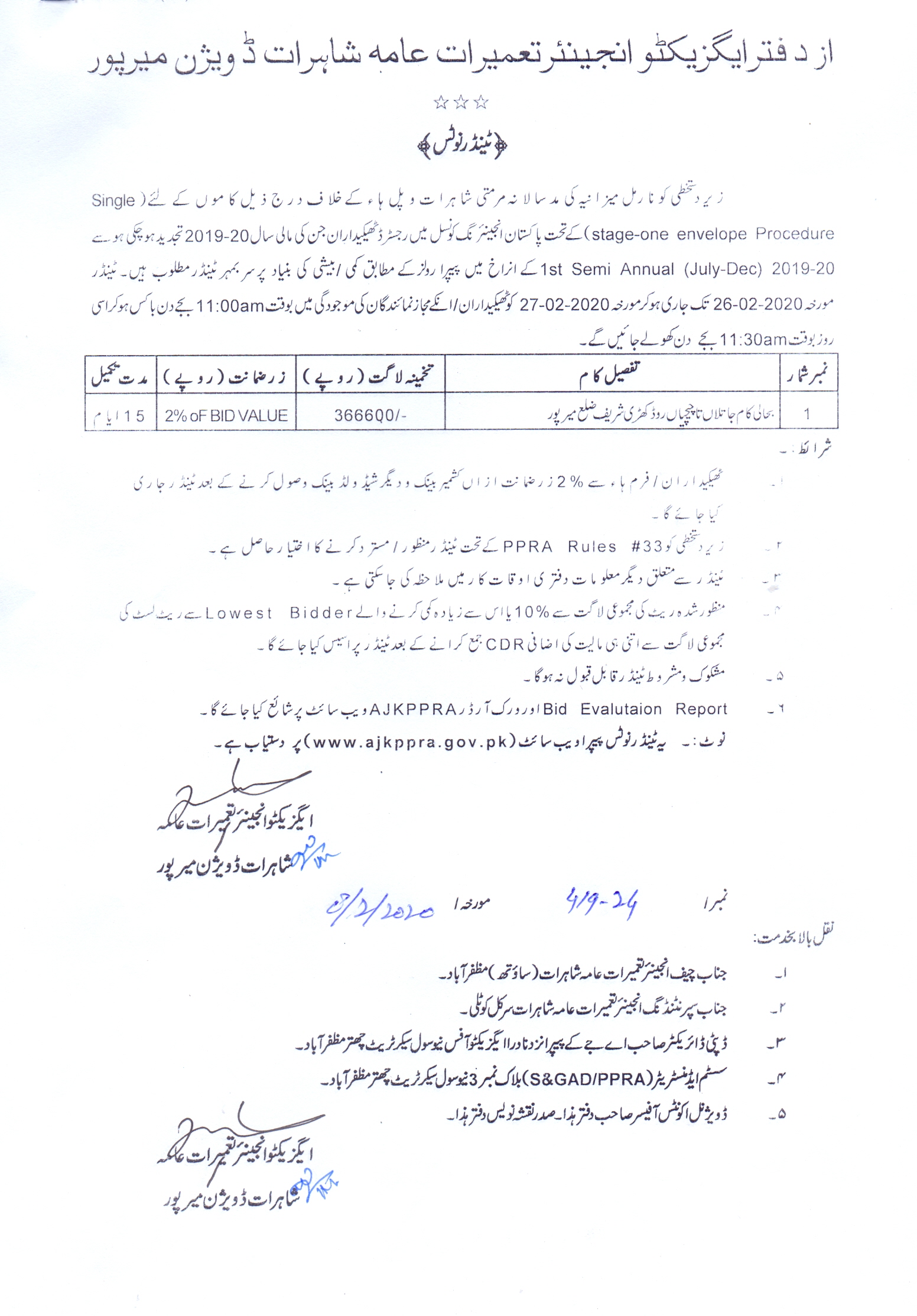 06-02-2020 | 22-02-2020 | Close | C&W | Highways Division Bhimber | Download File |
