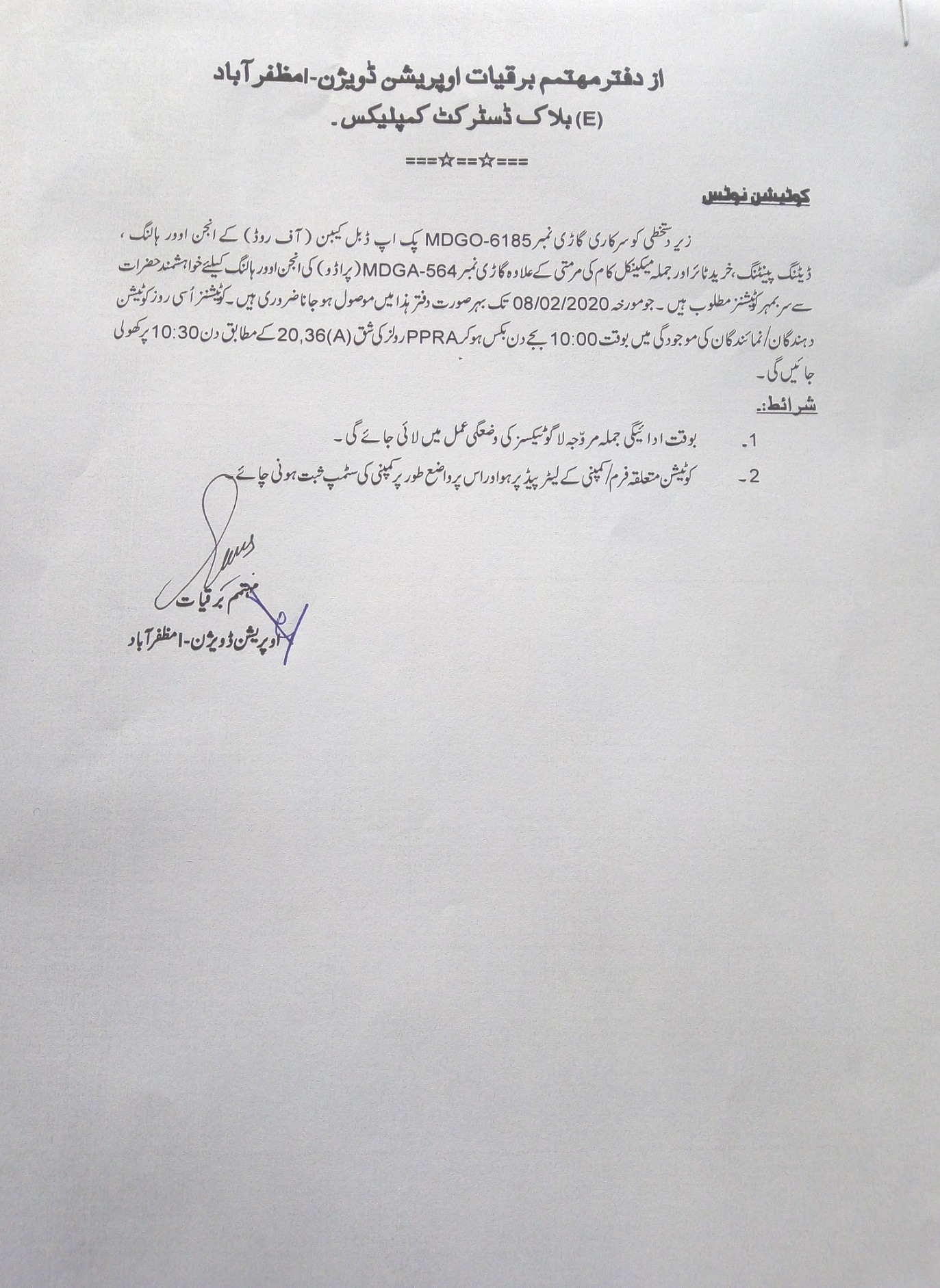 27-01-2020 | 13-02-2020 | Close | Corporations | Municipal Corporation Muzaffarabad | Download File