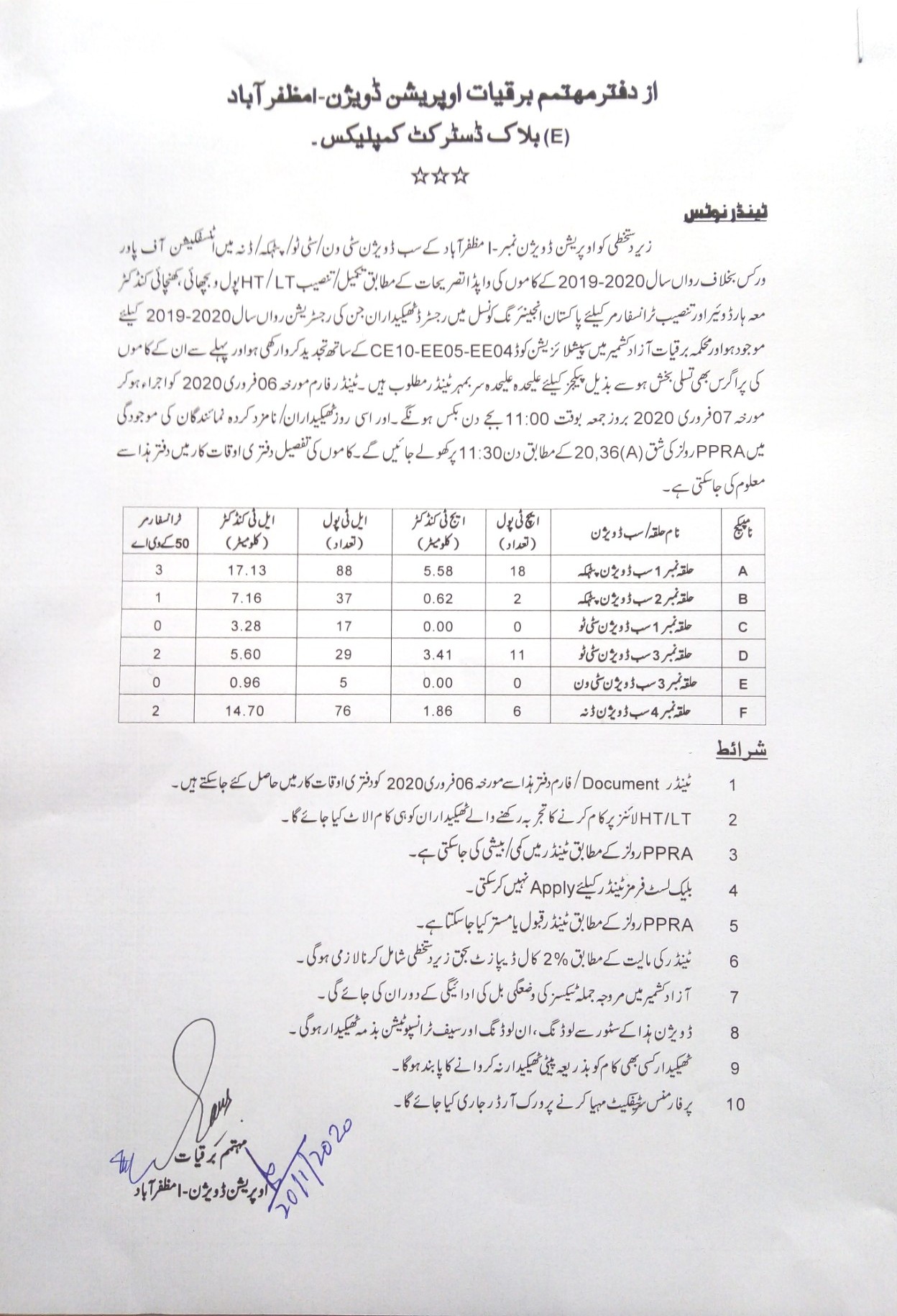 20-01-2020 | 08-02-2020 | Close | Energy and Water Resource | Electricity Muzaffarabad | Download File