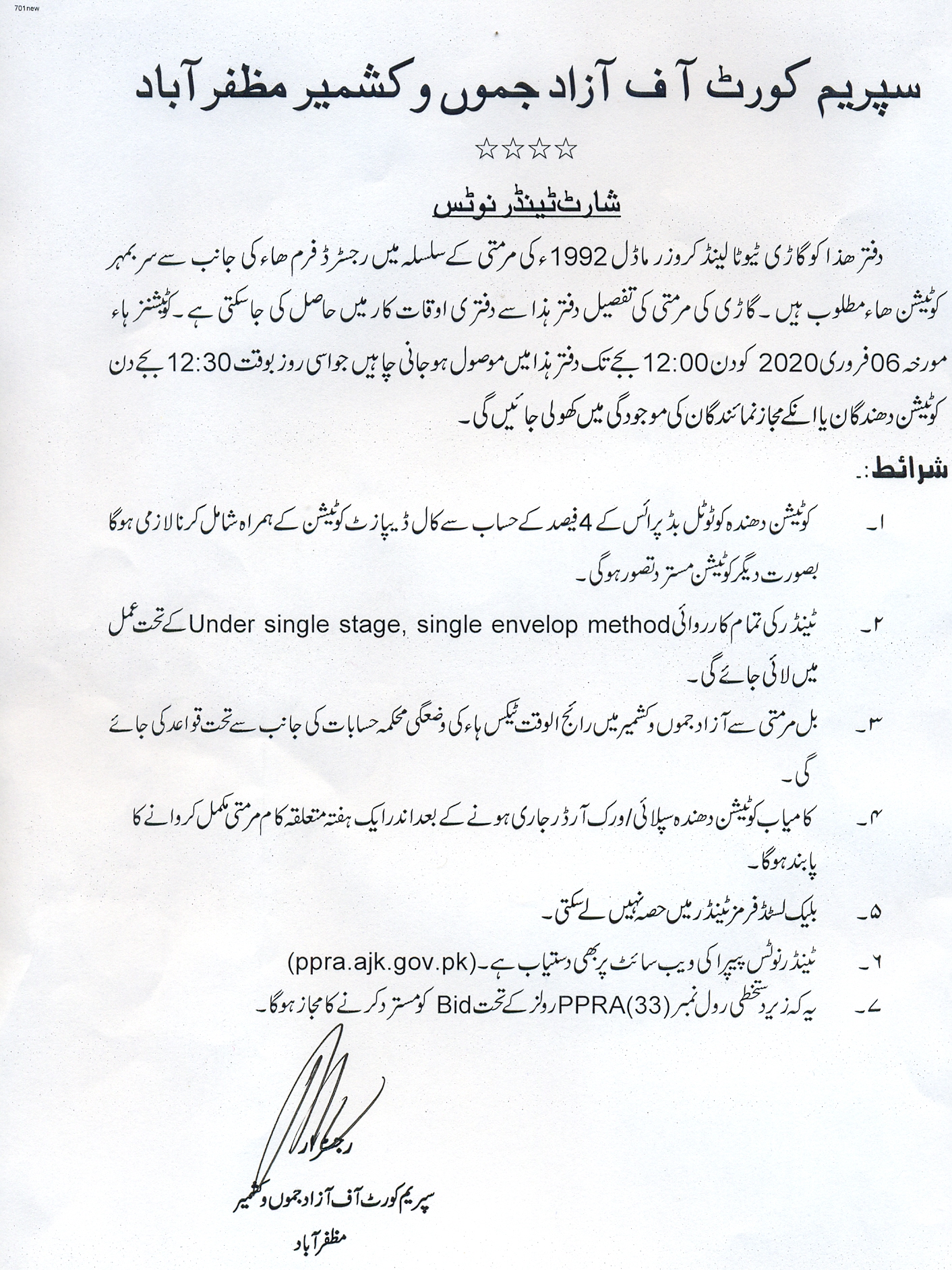 21-01-2020 | 06-02-2020 | Close | AJK Courts | Supreme Court Muzaffarabad | Download File |