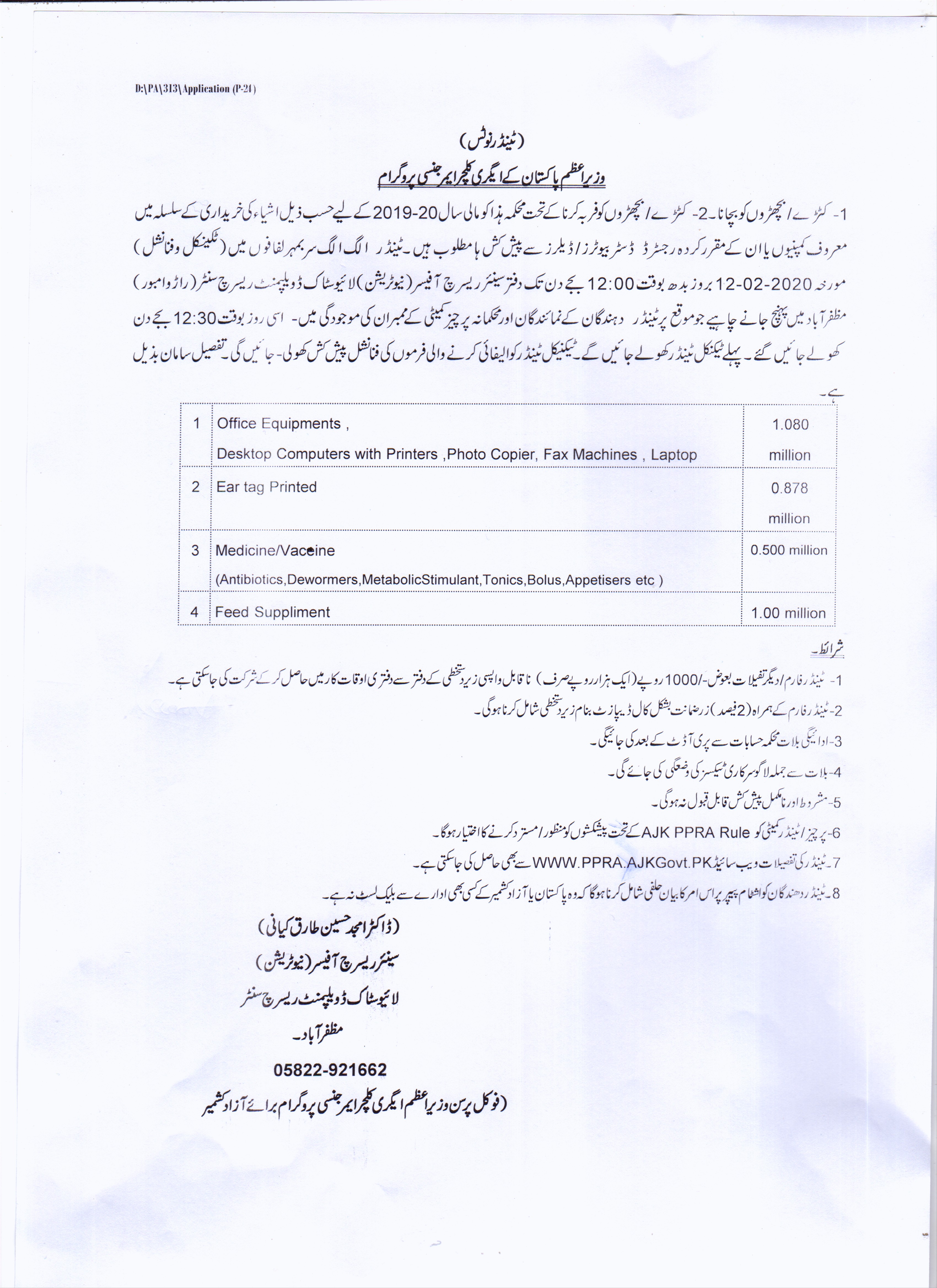 21-01-2020 | 12-02-2020 | Close | Agriculture | Live Stock Muzaffarabad | Download File
