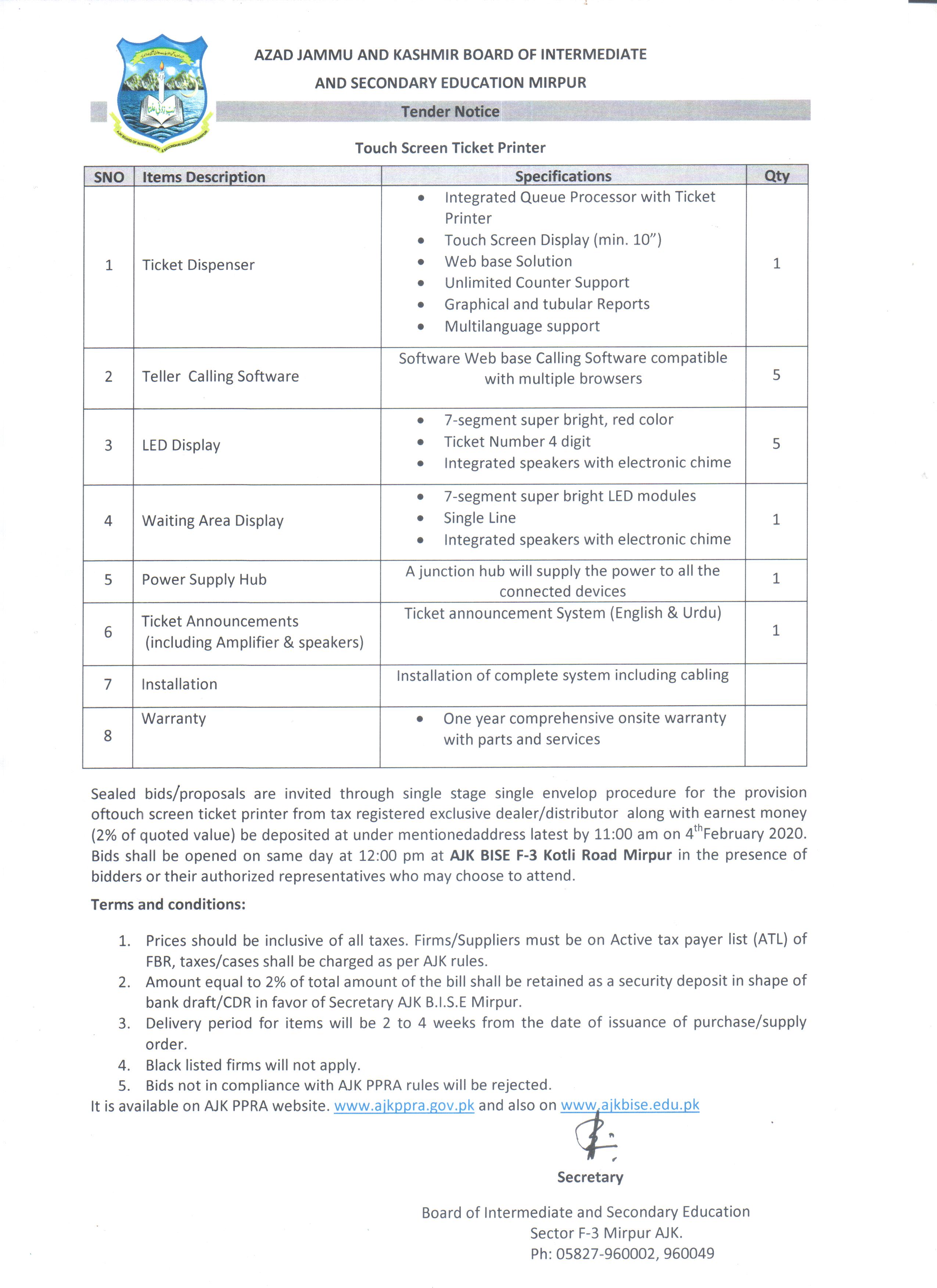 20-01-2020 | 17-02-2020 | Close | Services and General Administration Department | AJ&K PPRA | Download File