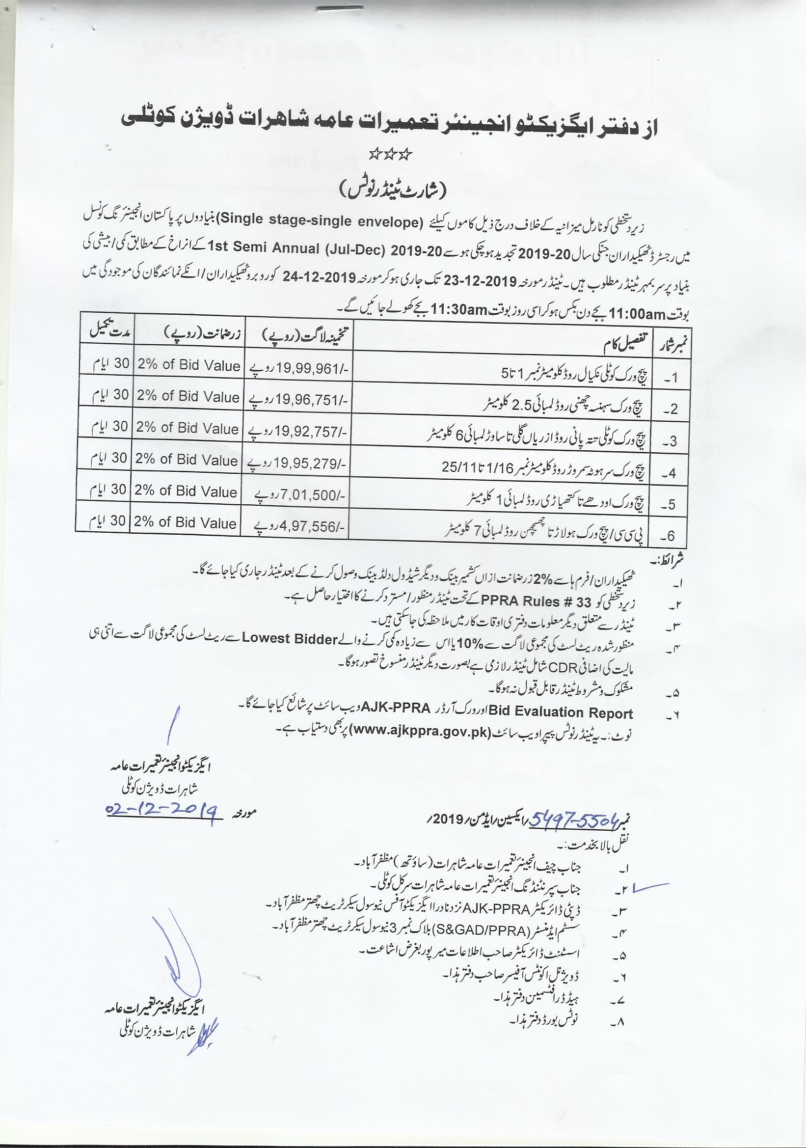 06-12-2019 | 23-12-2019 | Close | C&W | Highways Division Muzaffarabad | Download File |