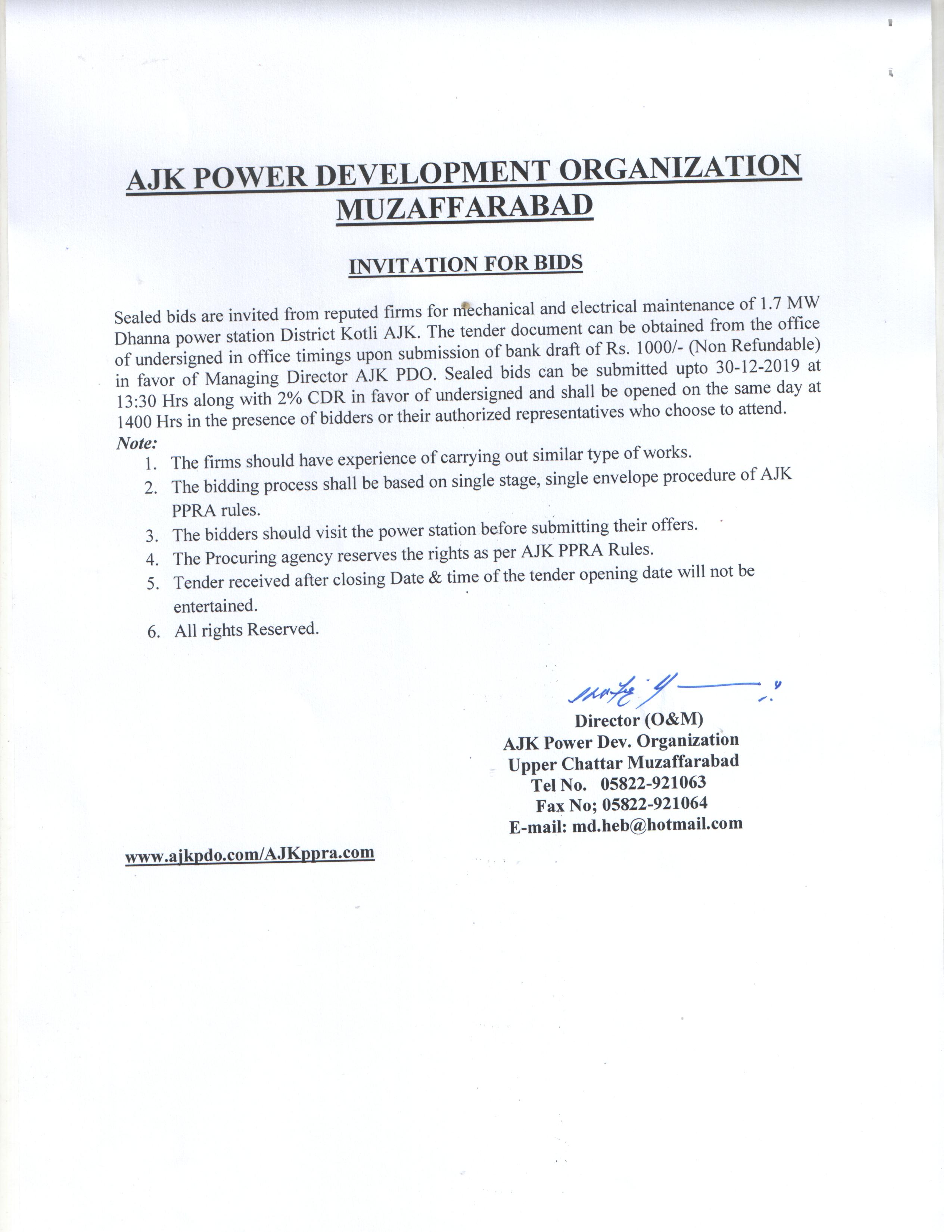 29-11-2019 | 13-12-2019 | Close | Energy and Water Resource | Electricity Muzaffarabad | Download File