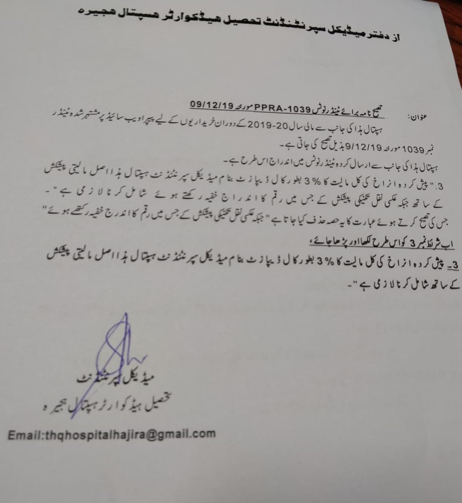 Tender For Goods (Rawalakot) |