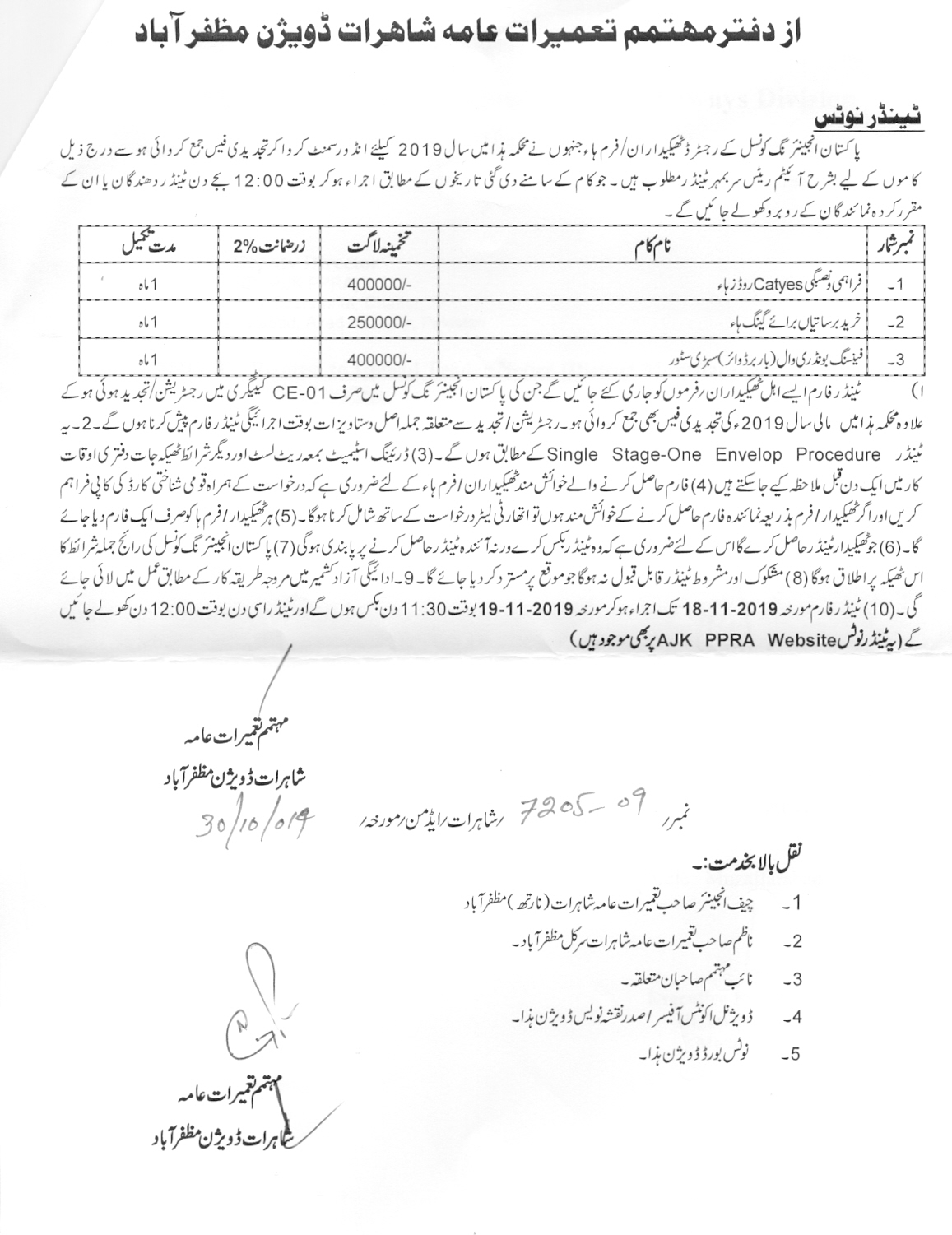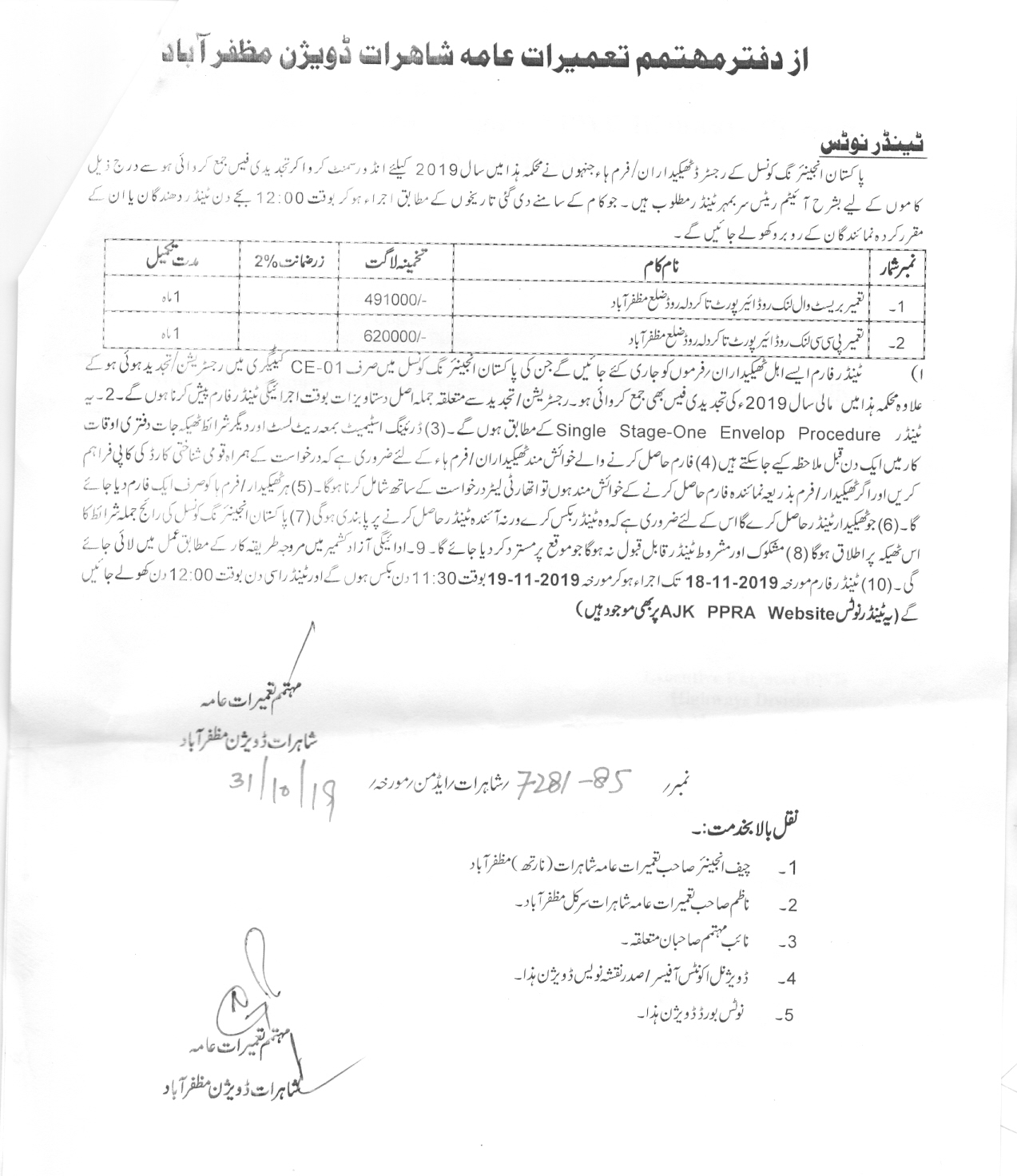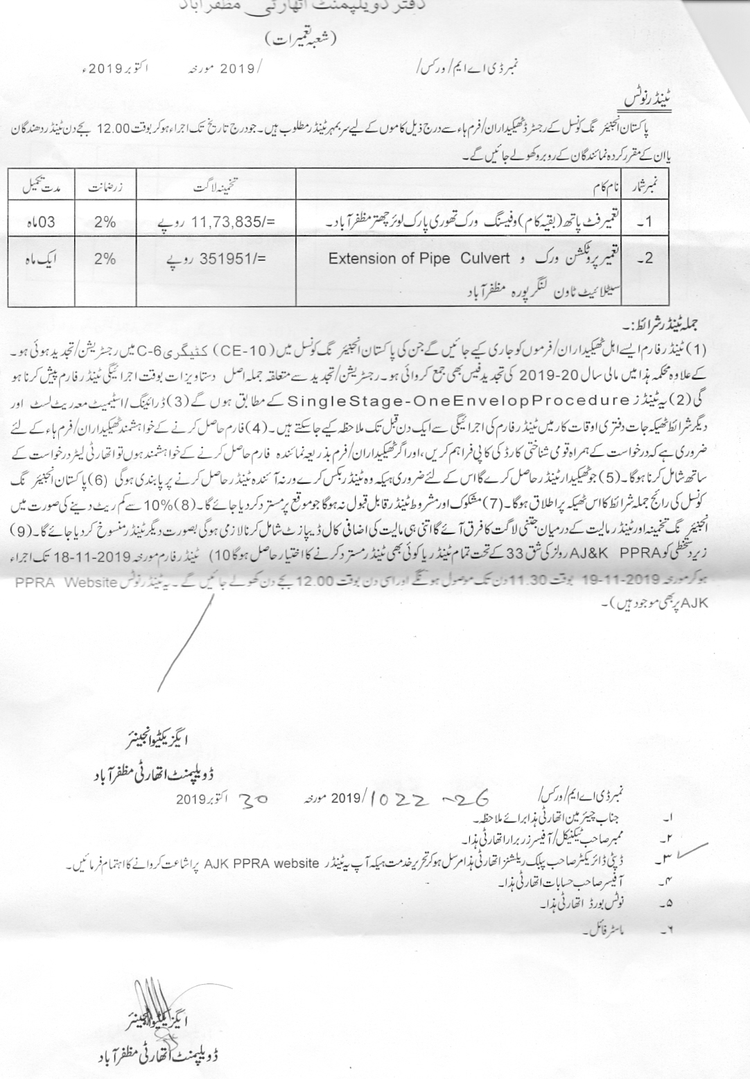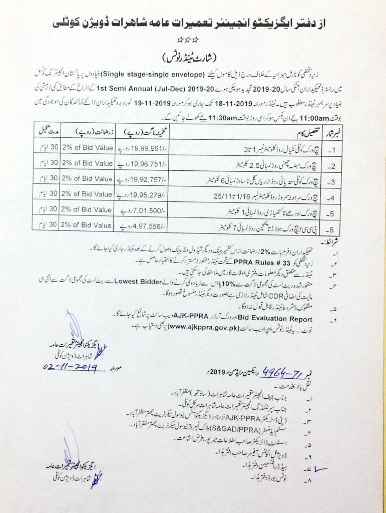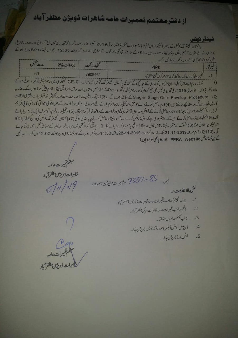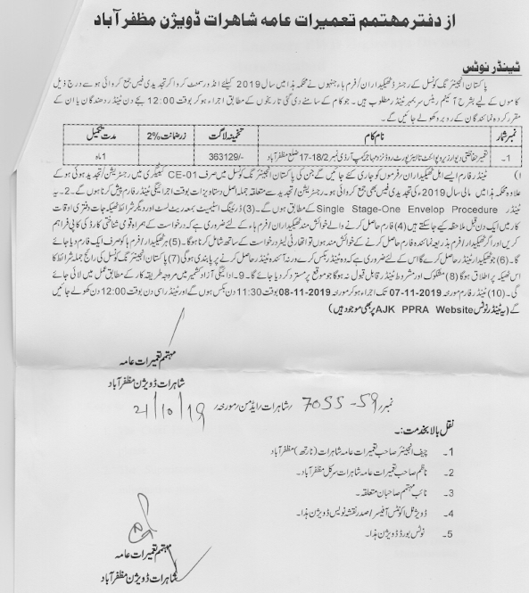 29-10-2019 | 19-11-2019 | Close | C&W | Highways Division Muzaffarabad | Download File |