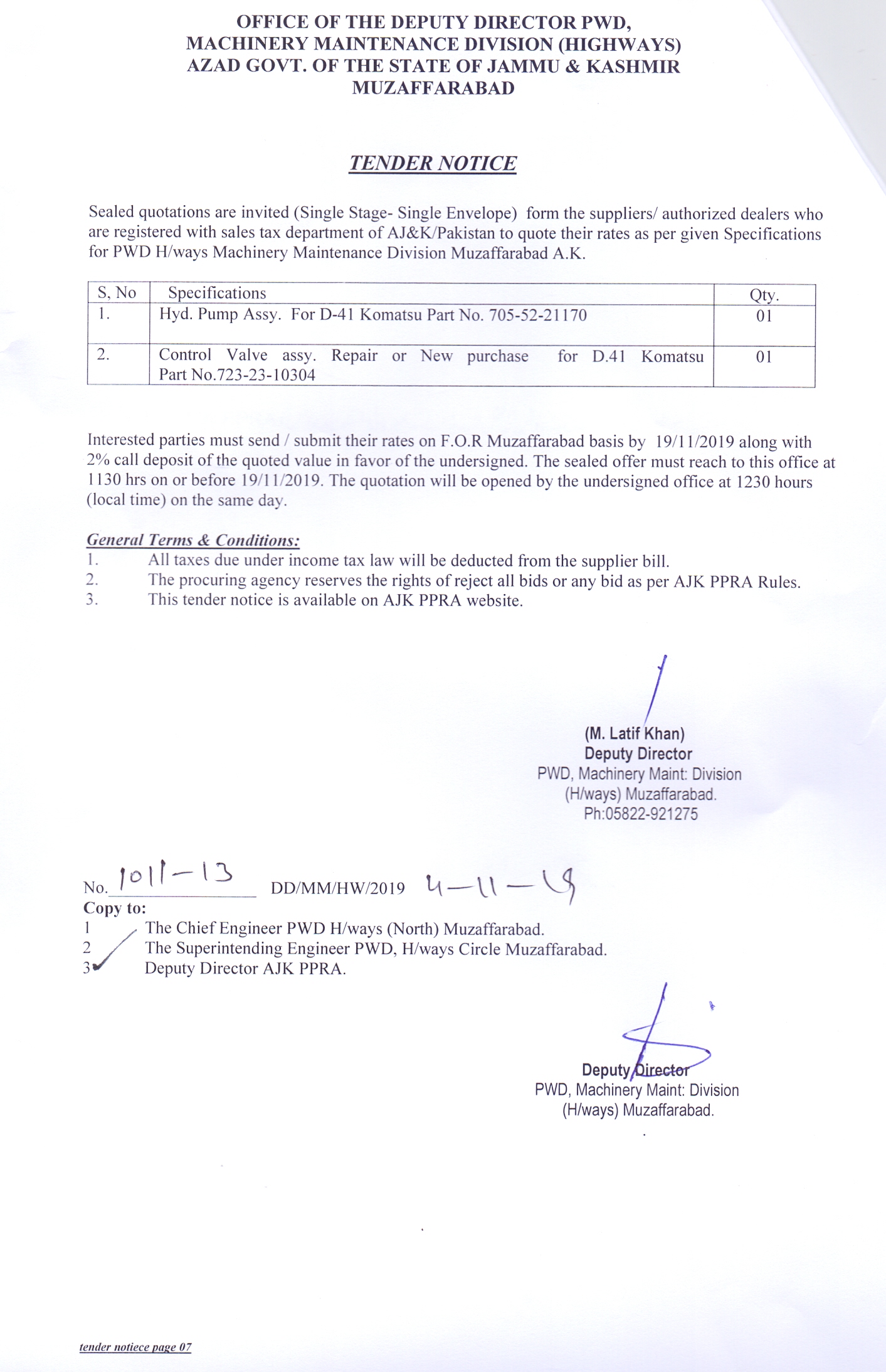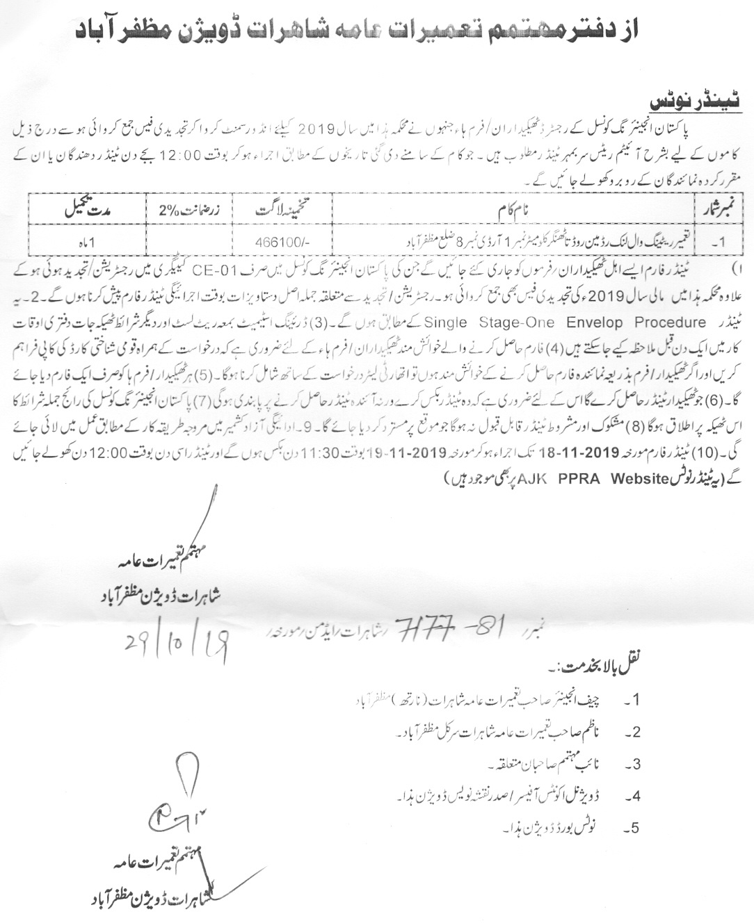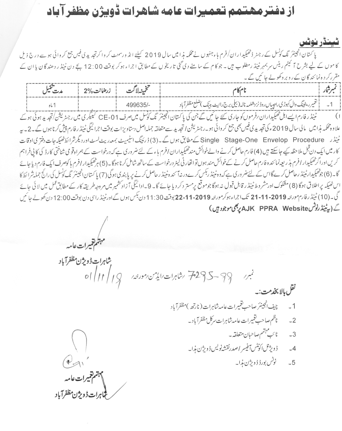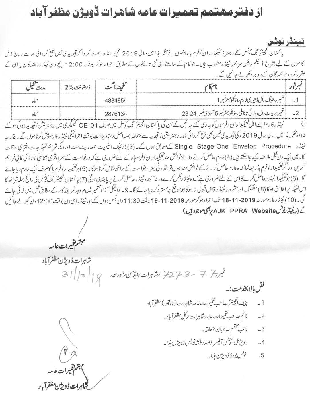 29-10-2019 | 19-11-2019 | Close | C&W | Highways Division Muzaffarabad | Download File |