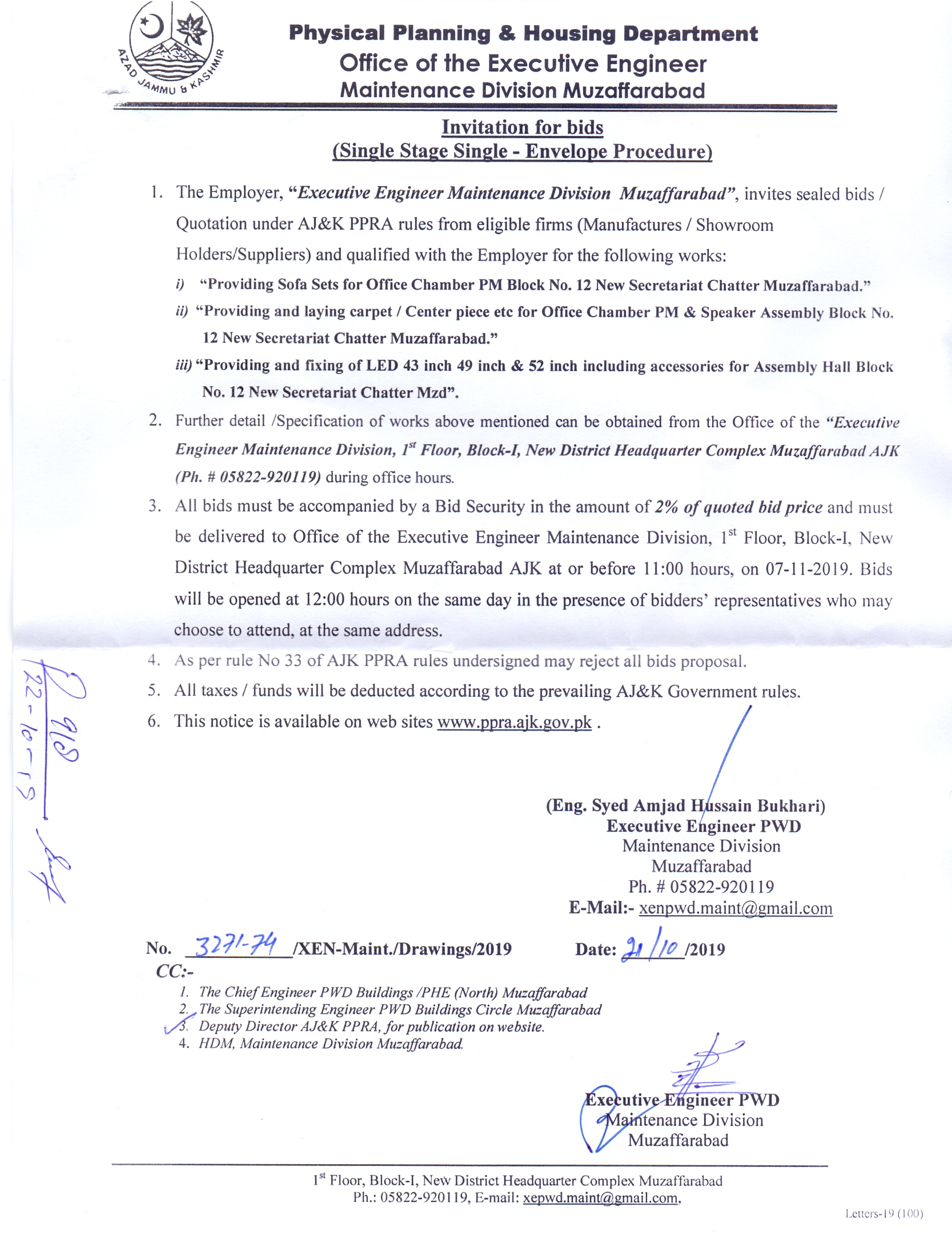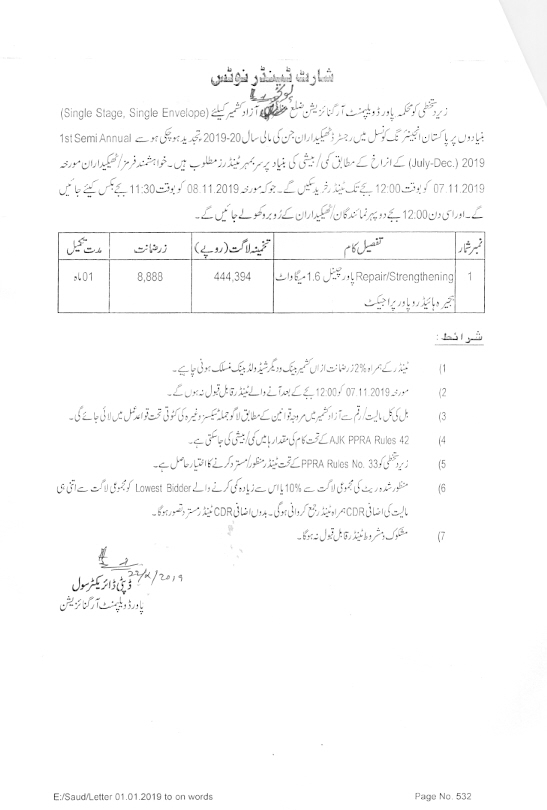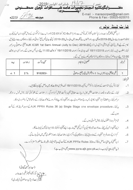 01-11-2019 | 19-11-2019 | Close | C&W | Highways Division Muzaffarabad | Download File |
