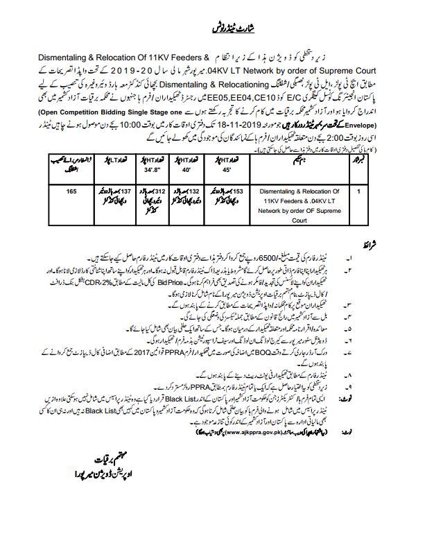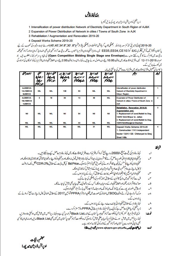 28-10-2019 | 20-11-2019 | Close | Energy and Water Resource | Electricity Muzaffarabad | Download File