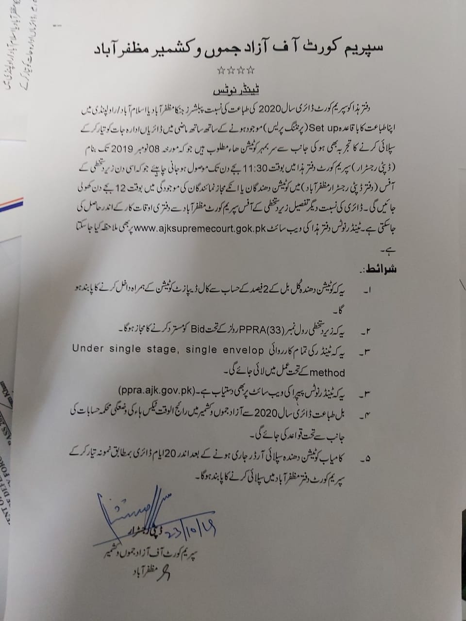 23-10-2019 | 08-11-2019 | Close | AJK Courts | Supreme Court Muzaffarabad | Download File |
