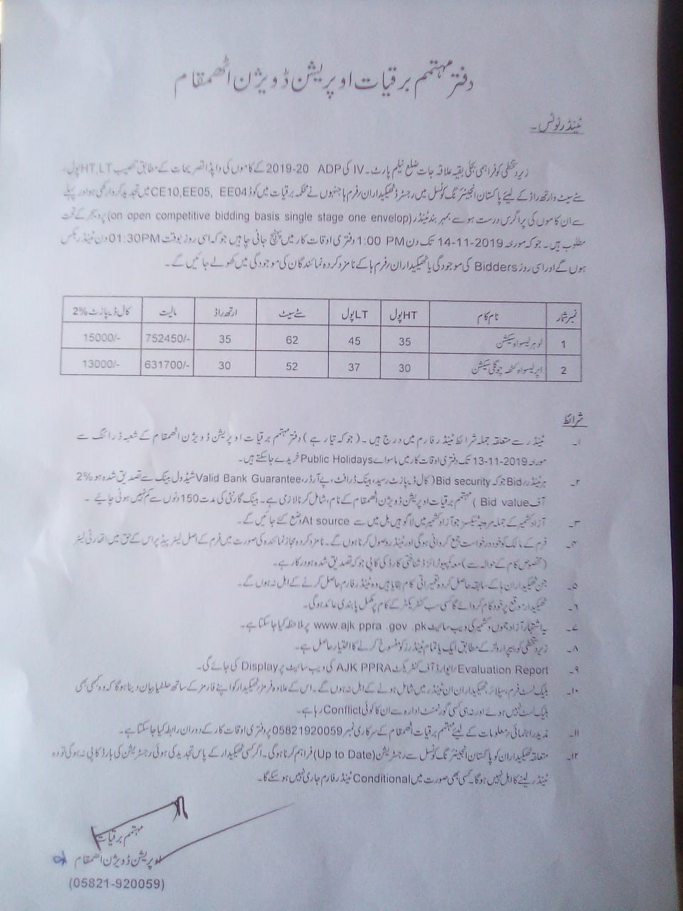 05-11-2019 | 11-12-2019 | Close | PP&H | PP&H Muzaffarabad | Download File