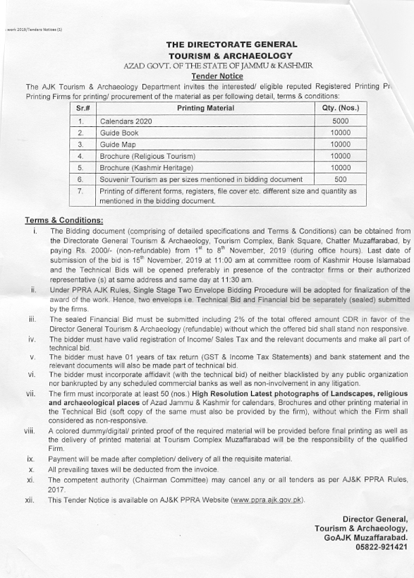 28-10-2019 | 18-11-2019 | Close | Tourism and Archaeology | Tourism and Archaeology Muzaffarabad | Download File |