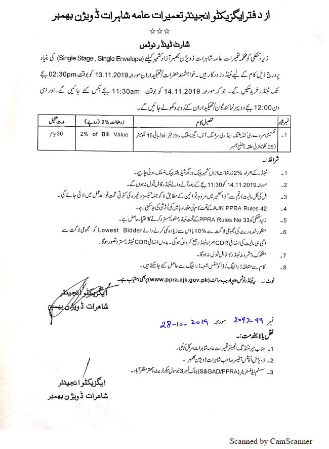 05-11-2019 | 19-11-2019 | Close | C&W | Highways Division Kotli | Download File |