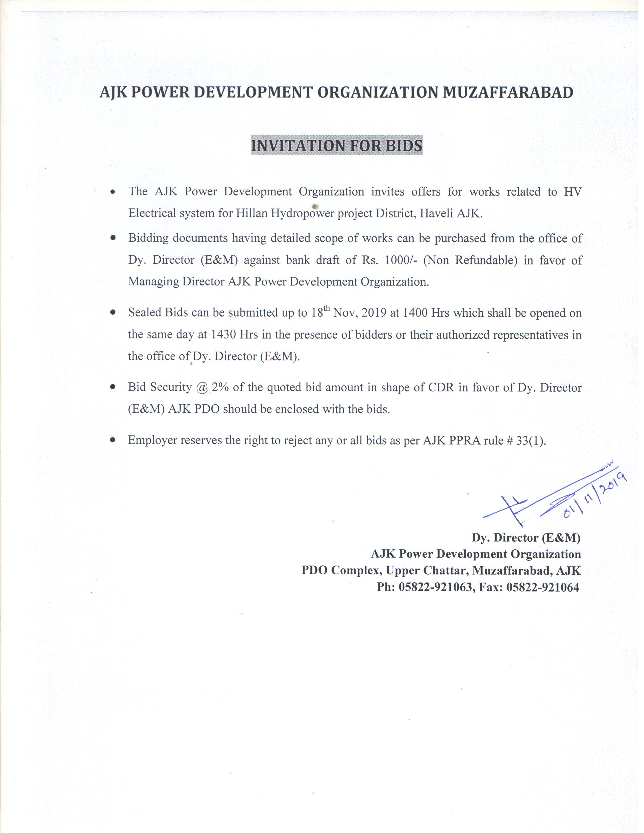 23-10-2019 | 18-11-2019 | Close | Energy and Water Resource | Electricity Mirpur | Download File |