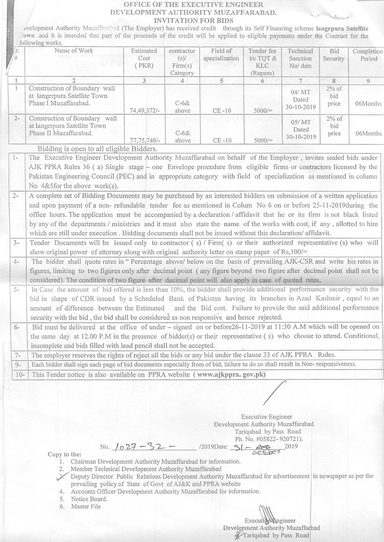 31-10-2019 | 19-11-2019 | Close | Development Authorities | Development Authority Muzaffarabad | Download File |