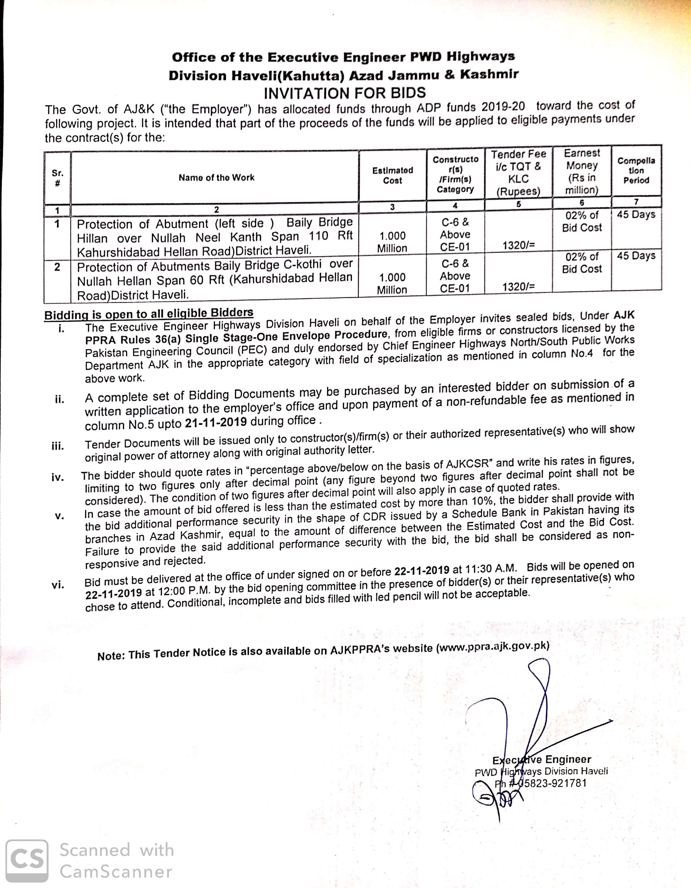 05-11-2019 | 22-11-2019 | Close | C&W | Highways Division Muzaffarabad | Download File |