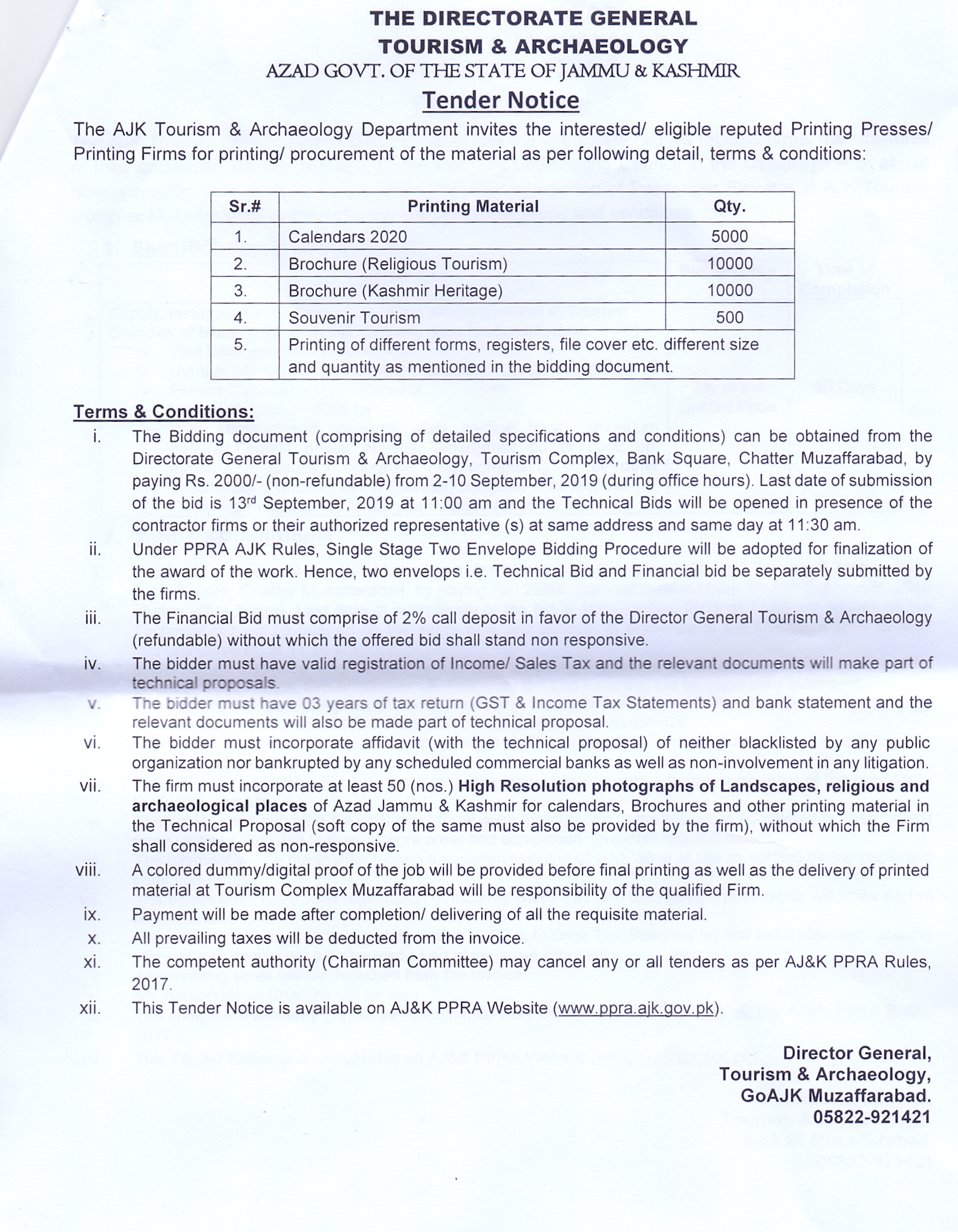 05-09-2019 | 19-09-2019 | Close | Tourism and Archaeology | Tourism and Archaeology Muzaffarabad | Download File |