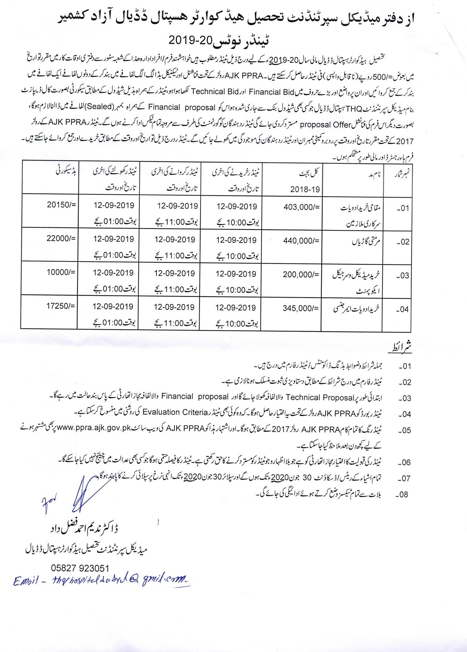 Tender For Goods (THQH Dadyal) |