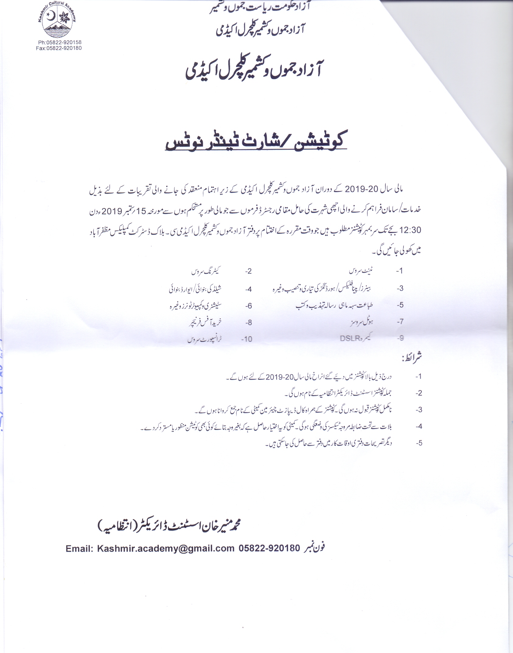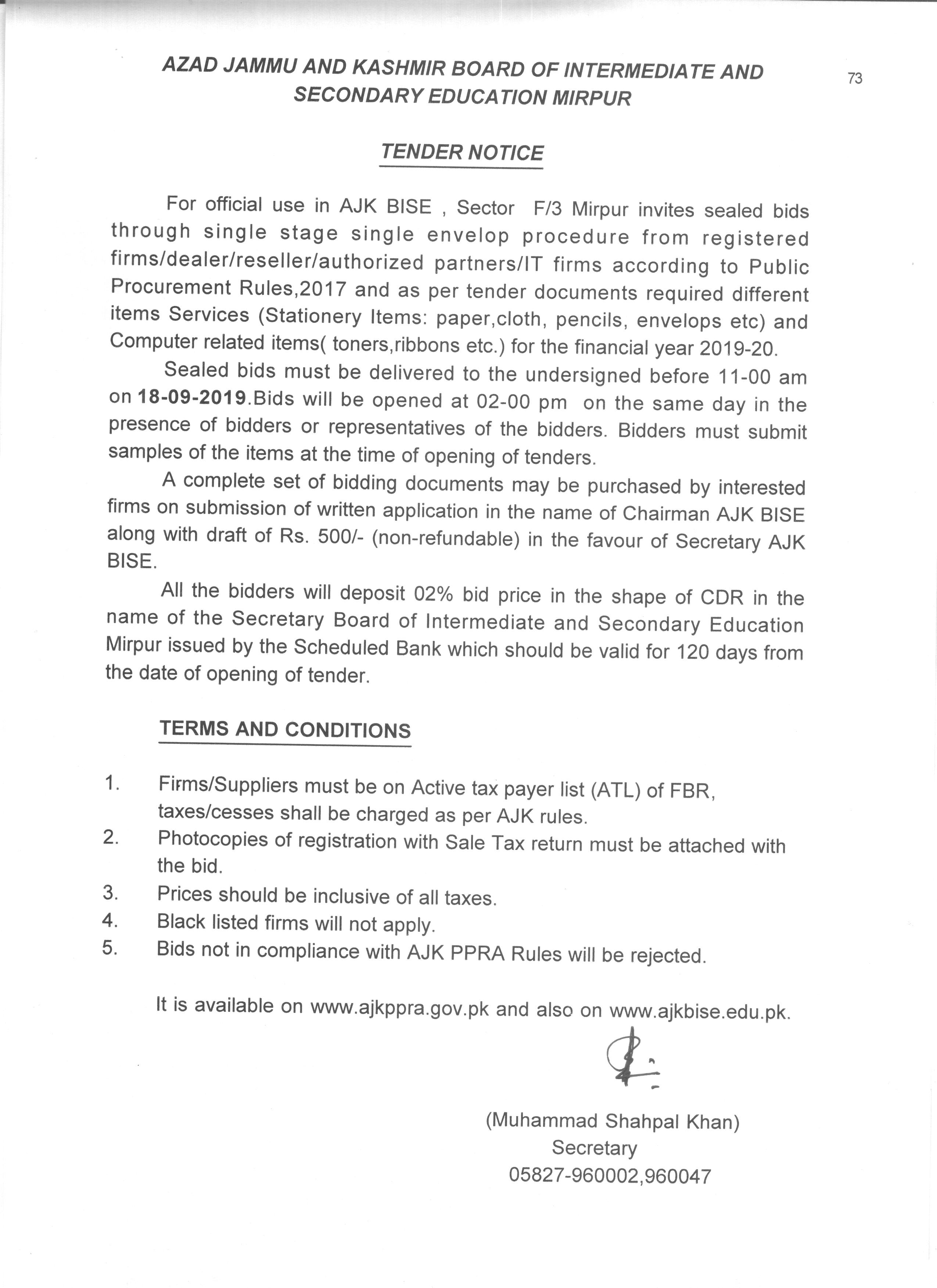 Tender For Goods (AJK Cultural Academy) |