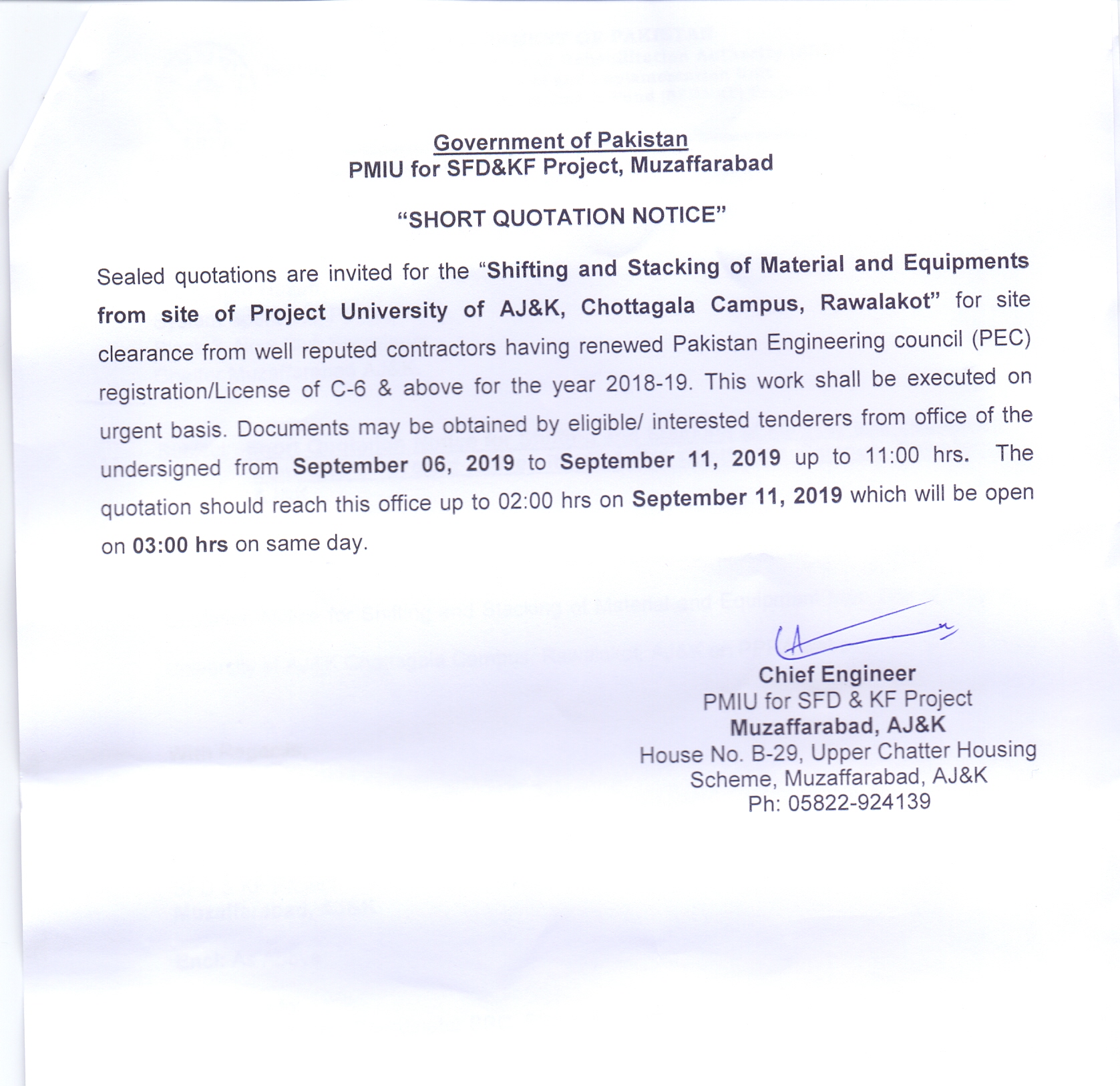 05-09-2019 | 21-09-2019 | Close | PP&H | PP&H Muzaffarabad | Download File