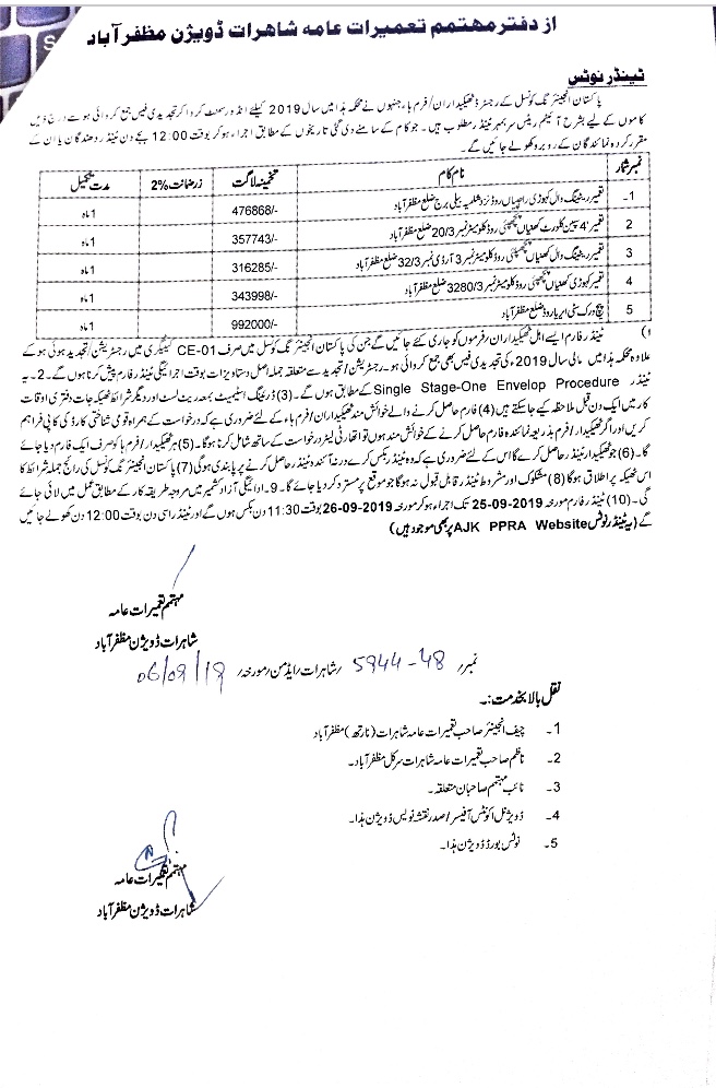 12-09-2019 | 28-09-2019 | Close | C&W | Highways Division Muzaffarabad | Download File |