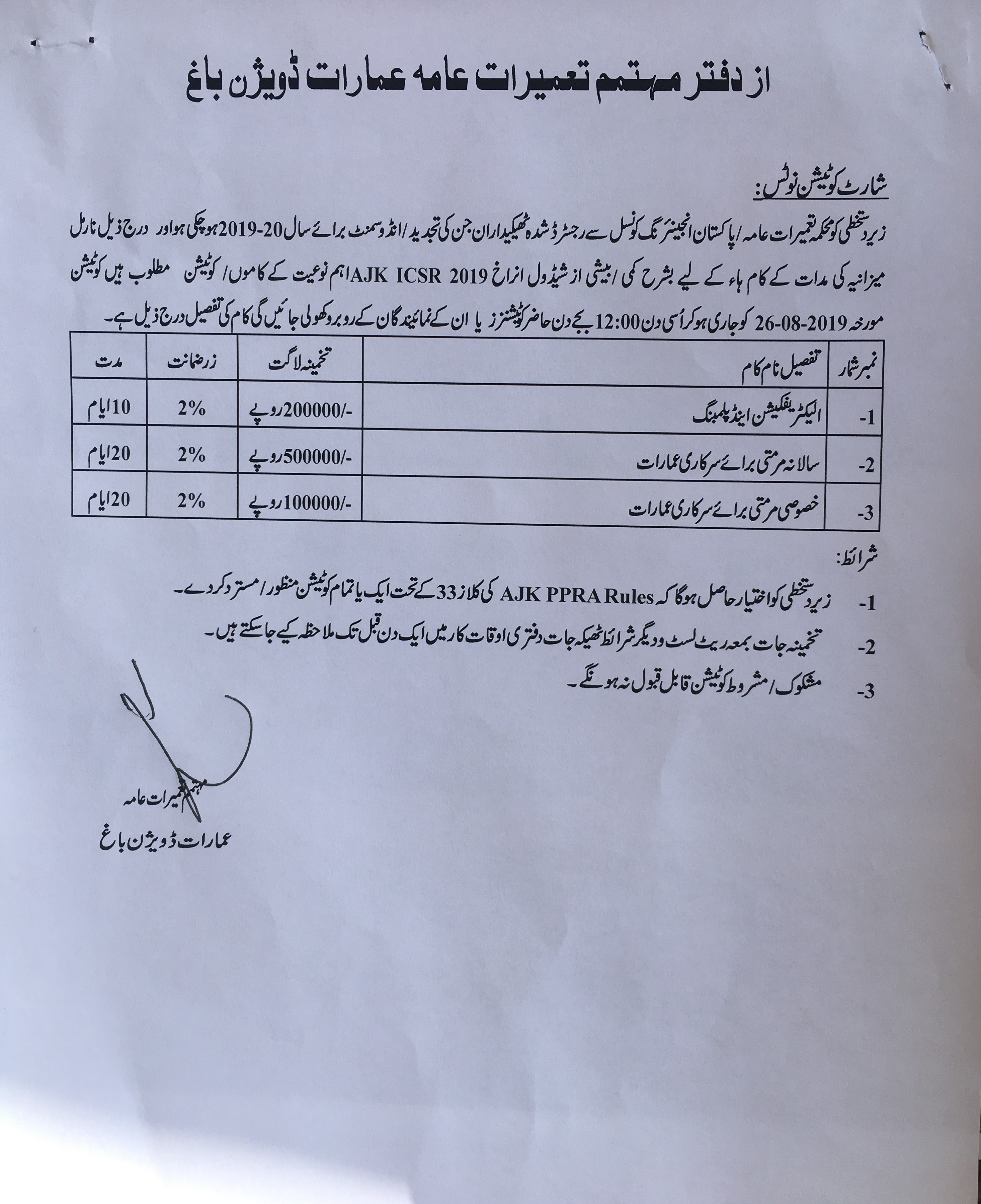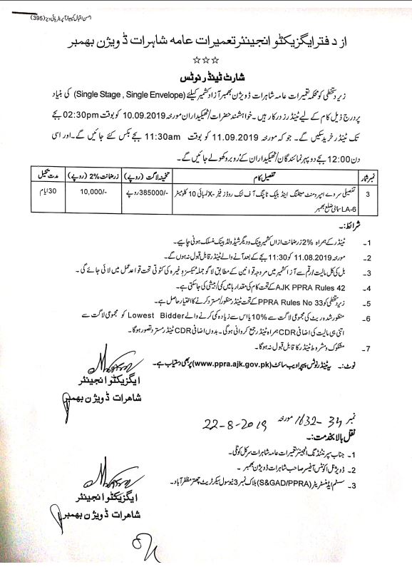 09-08-2019 | 27-08-2019 | Close | C&W | Highways Division Muzaffarabad | Download File |