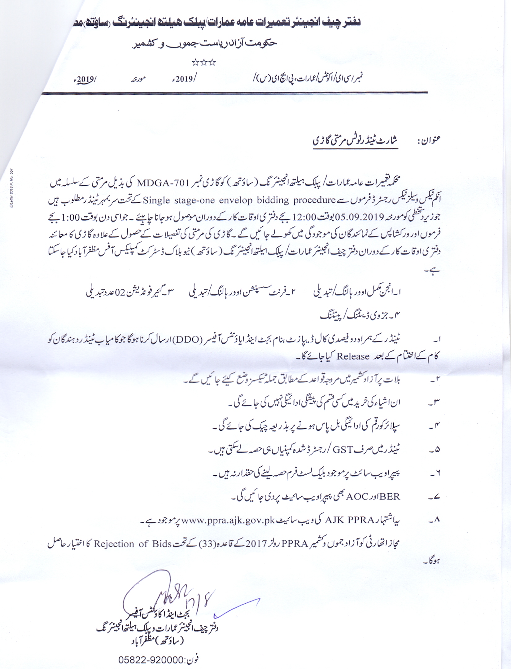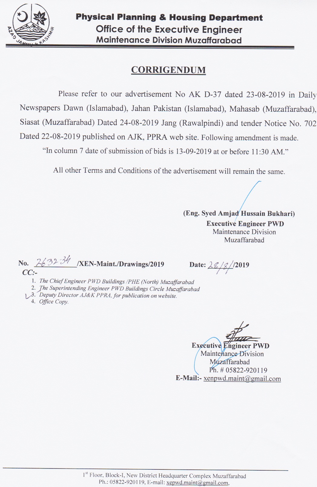 22-08-2019 | 13-09-2019 | Close | PP&H | PP&H Muzaffarabad | Download File