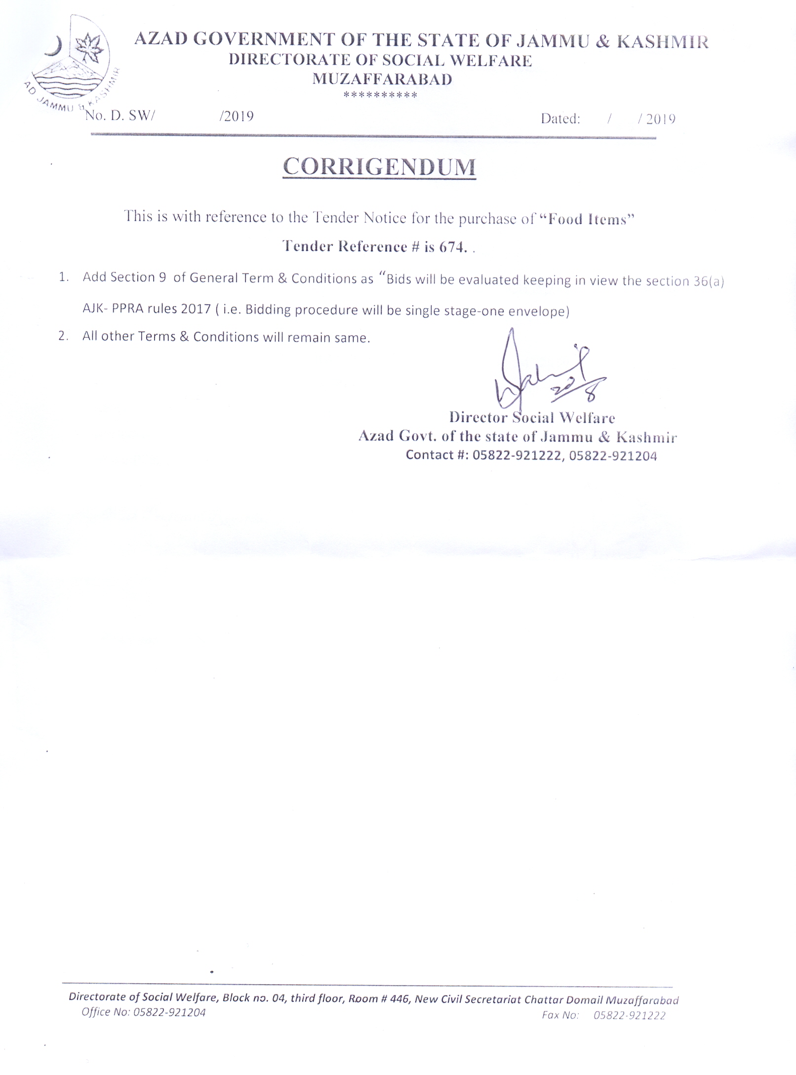 | Tender Notice 674 |