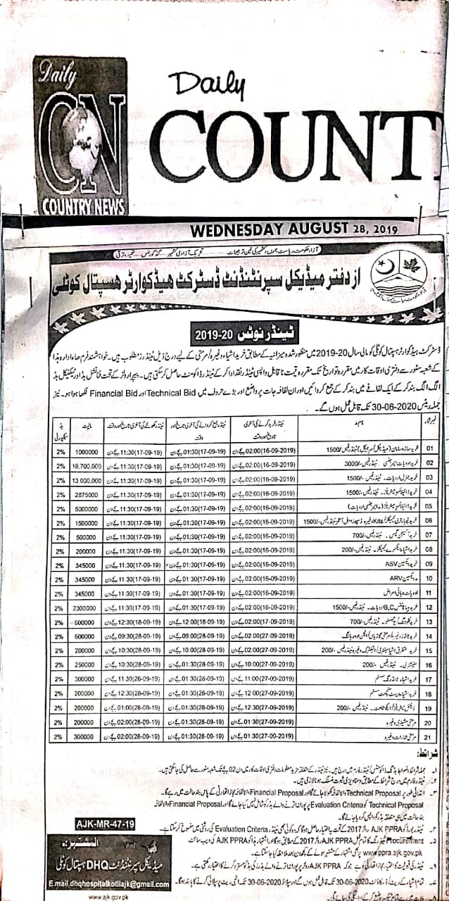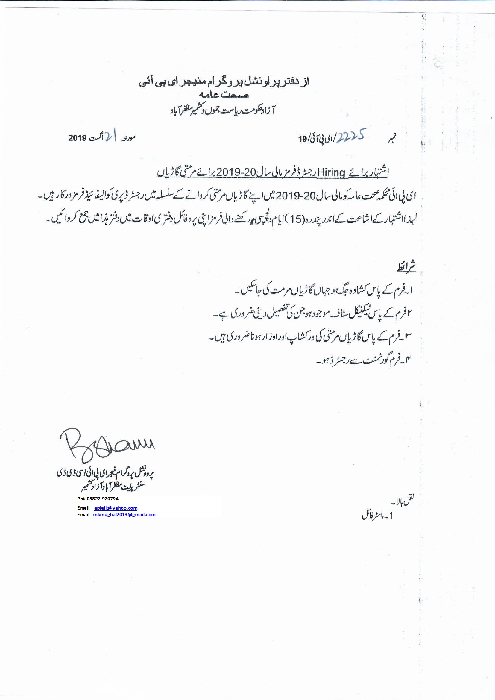 08-08-2019 | 29-08-2019 | Close | Health Department | Health Muzaffarabad | Download File