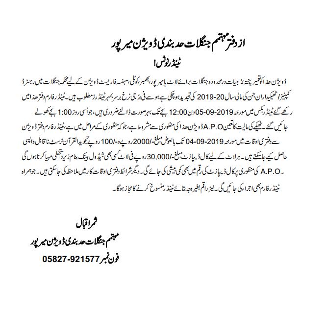 21-08-2019 | 05-09-2019 | Close | Forest | Forest Mirpur | Download File |