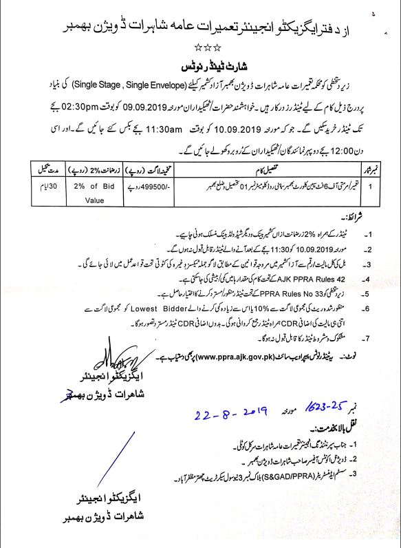 22-08-2019 | 27-09-2019 | Close | C&W | Highways Division Bhimber | Download File