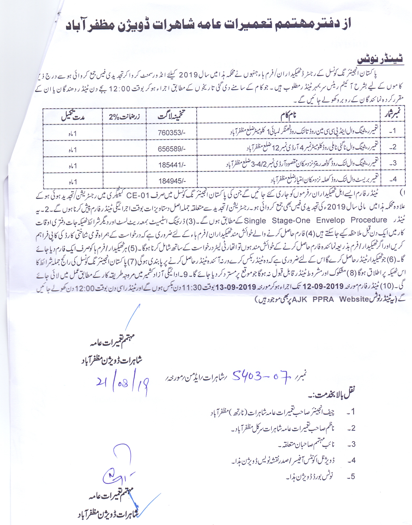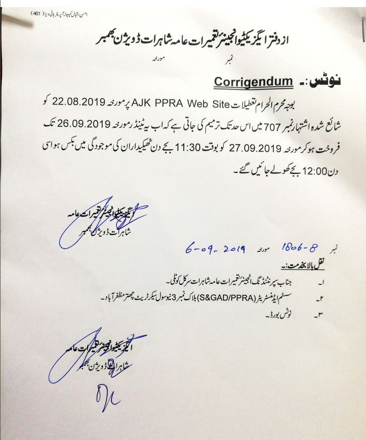 21-08-2019 | 13-09-2019 | Close | C&W | Highways Division Muzaffarabad | Download File |