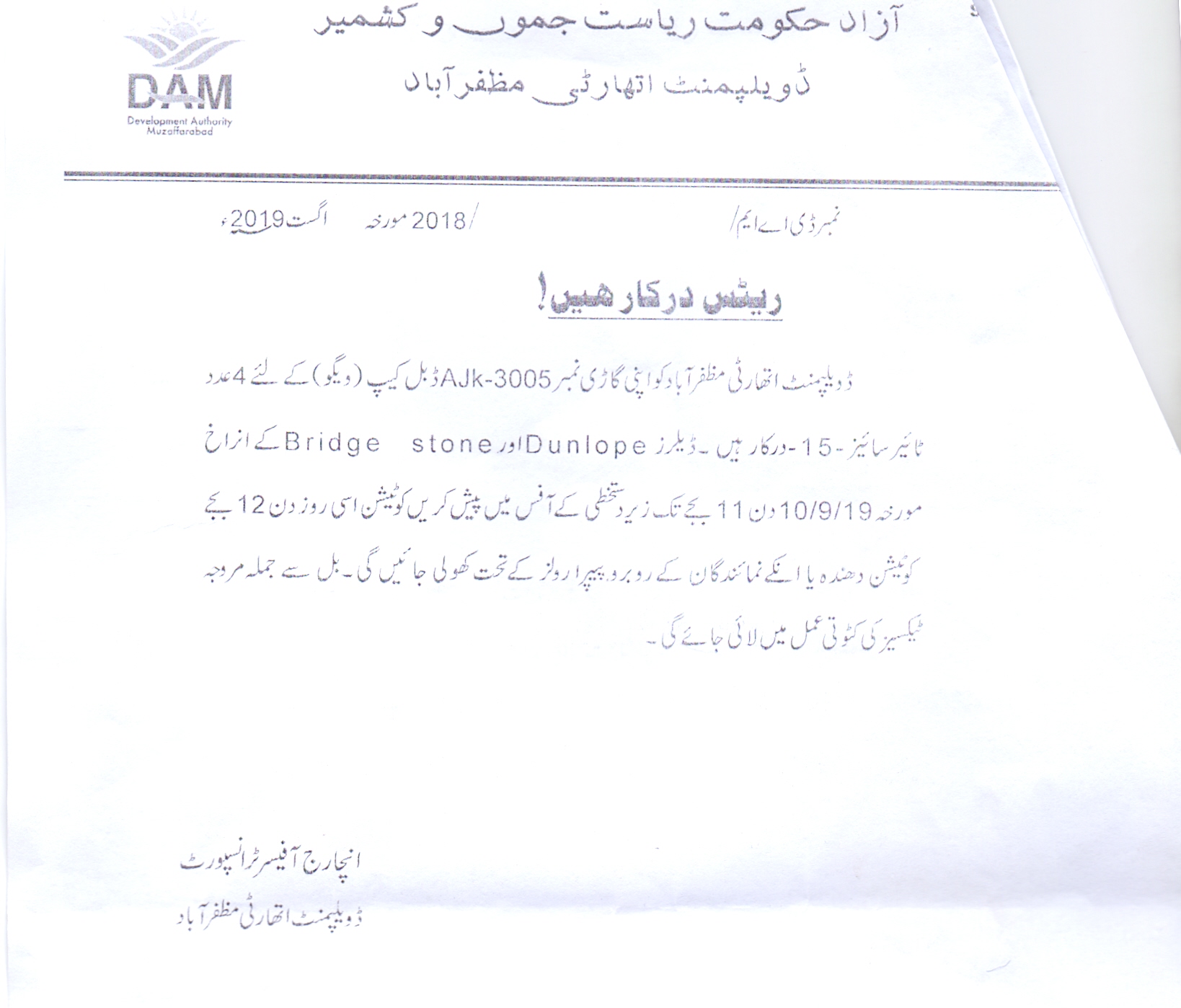 28-08-2019 | 10-09-2019 | Close | Development Authorities | Development Authority Muzaffarabad | Download File |