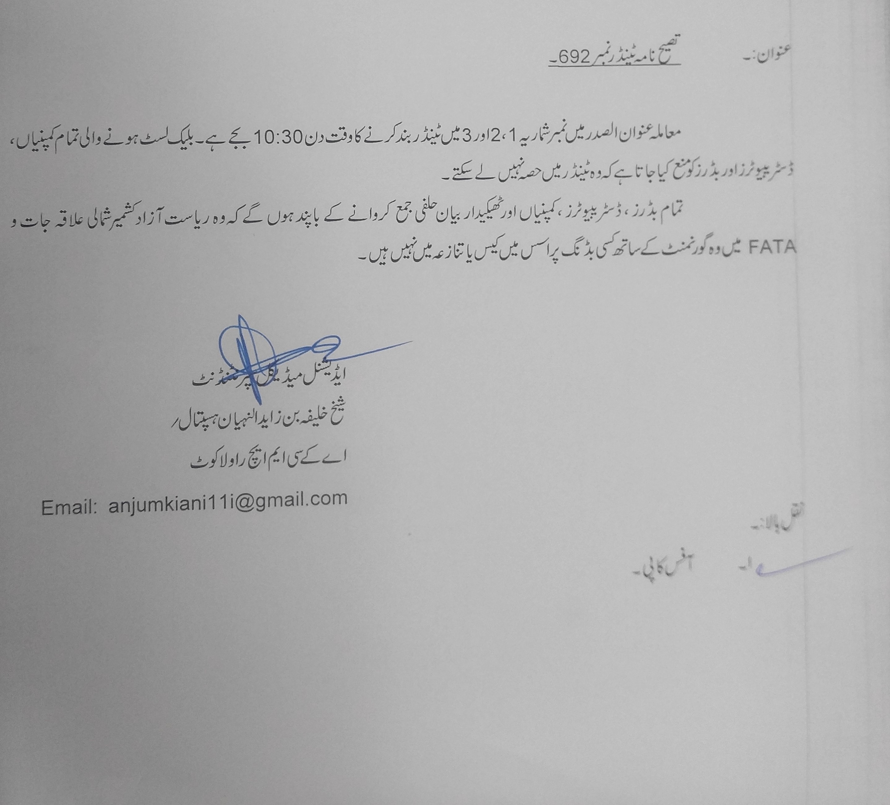 | Tender Notice 692 |