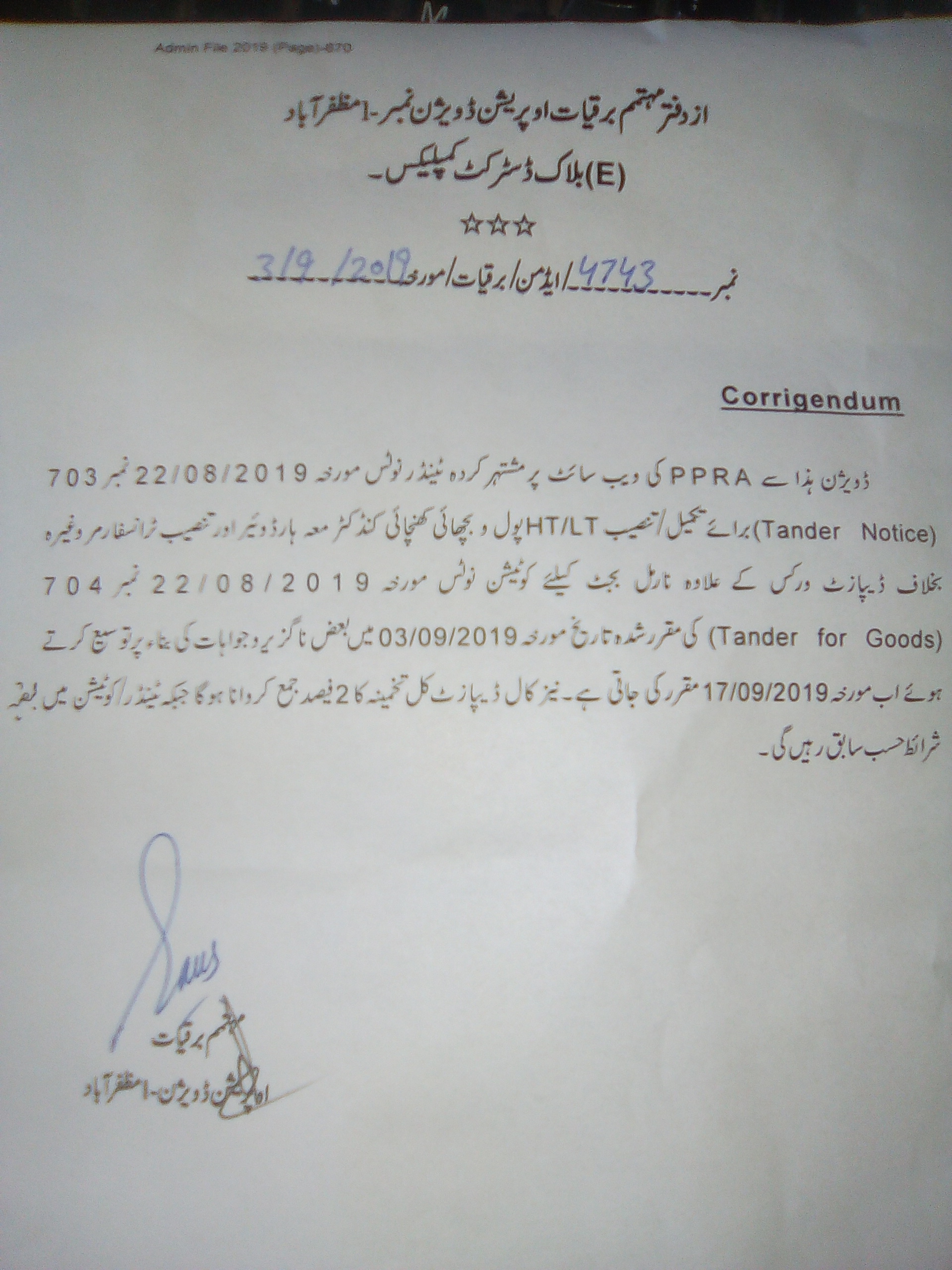 22-08-2019 | 17-09-2019 | Close | Energy and Water Resource | Electricity Muzaffarabad | Download File