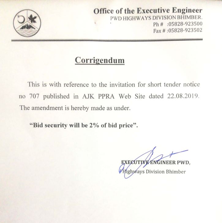 22-08-2019 | 13-09-2019 | Close | C&W | Highways Division Muzaffarabad | Download File |