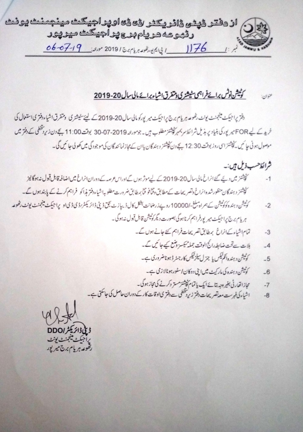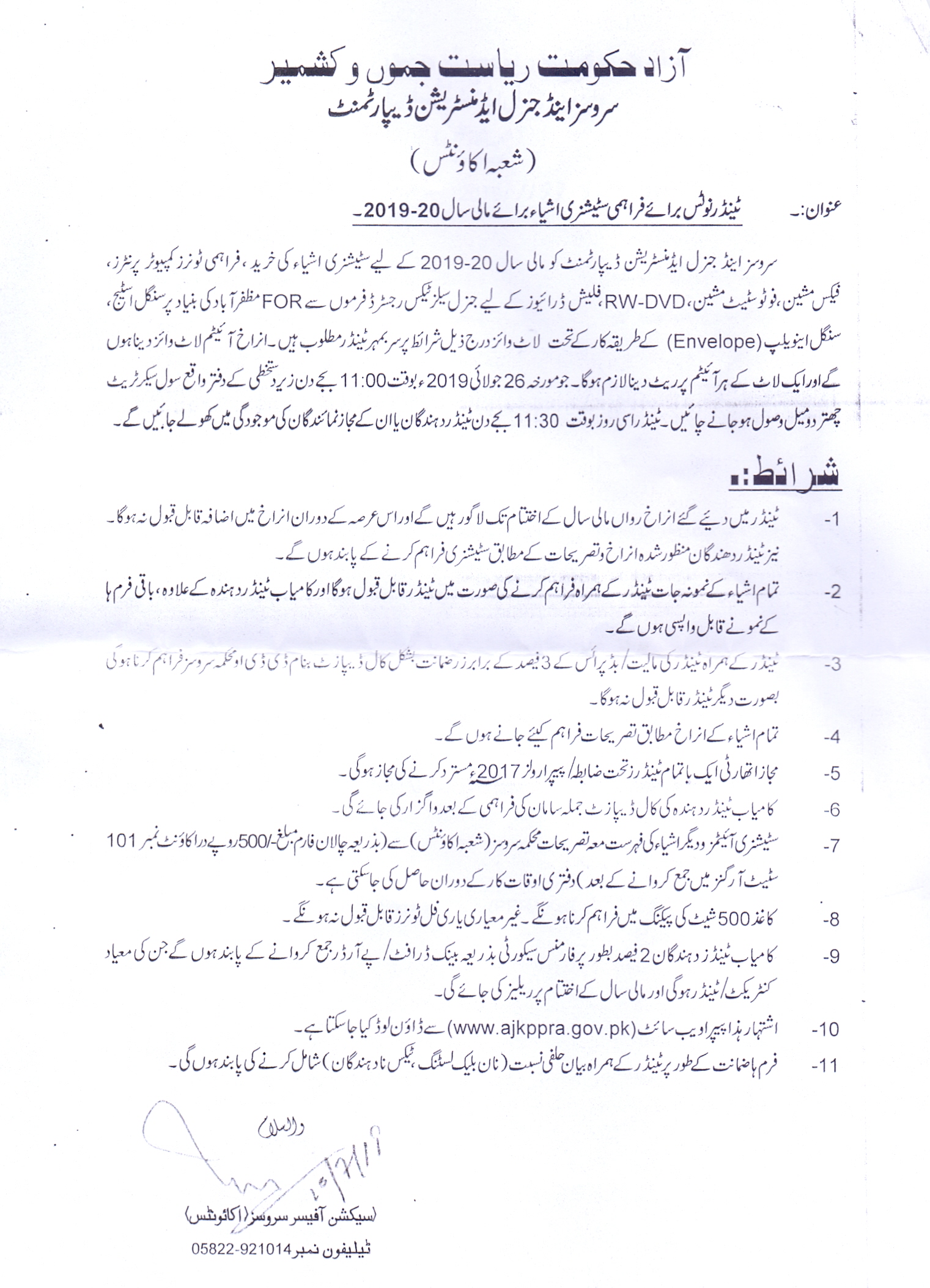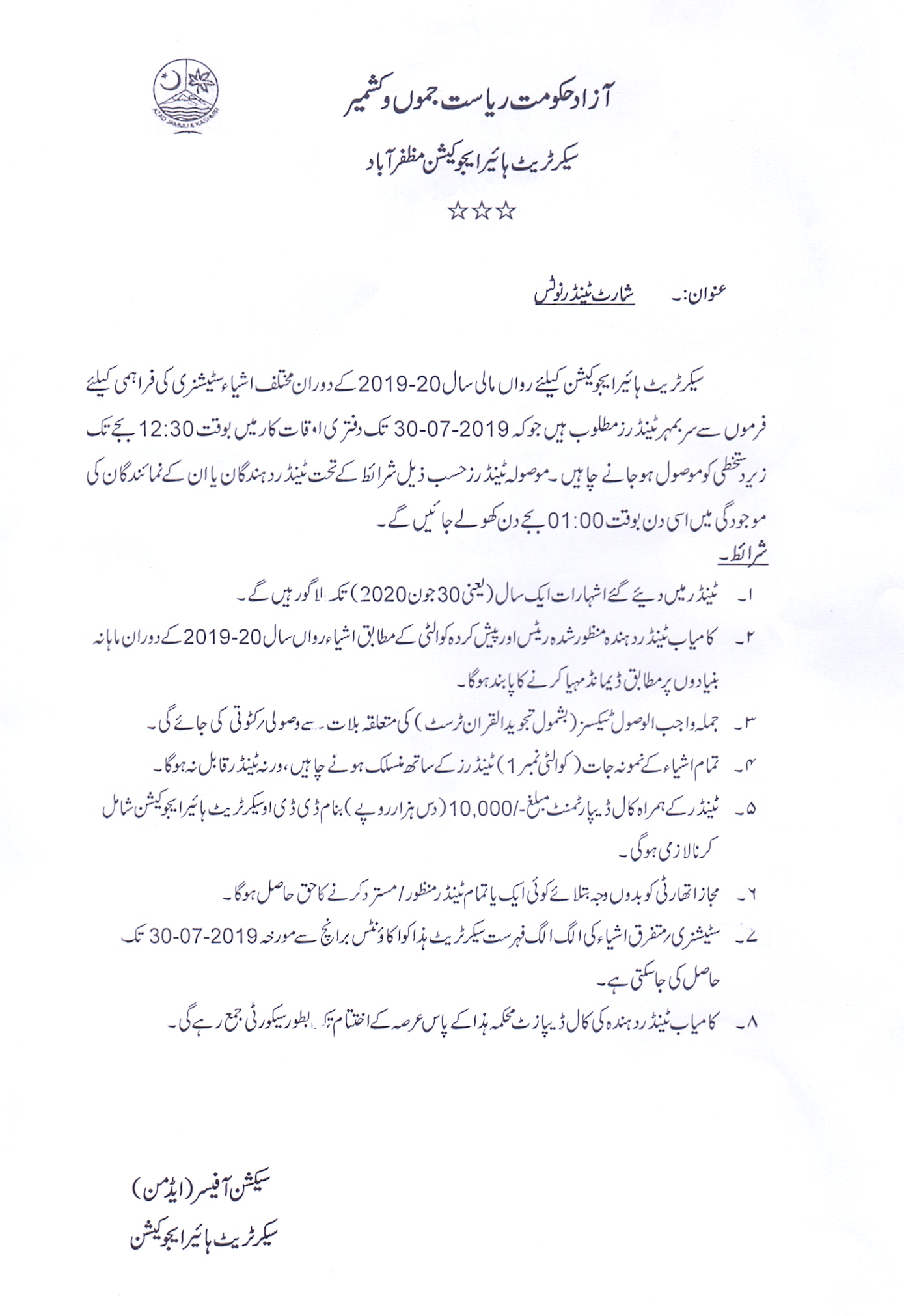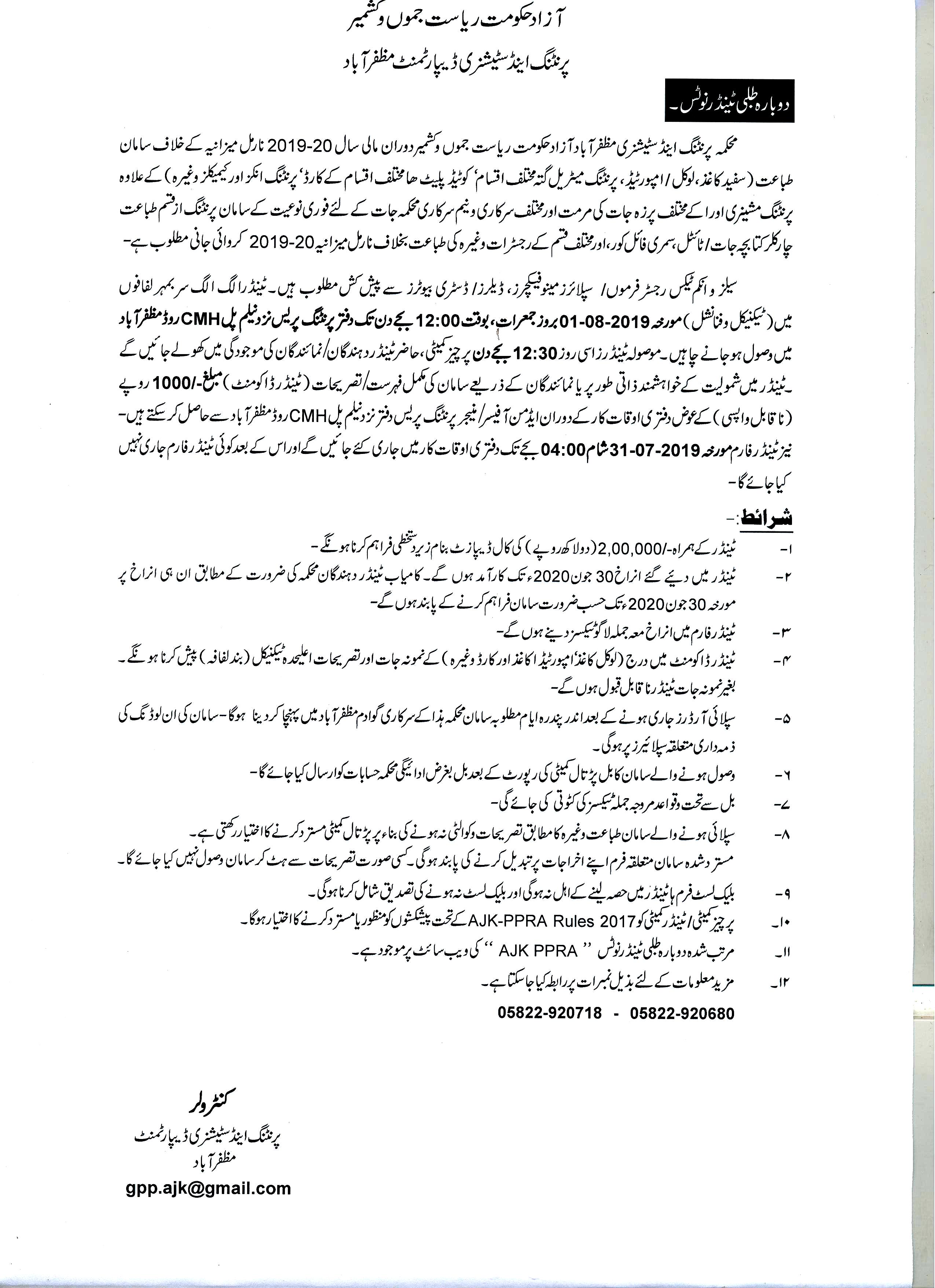 15-07-2019 | 01-08-2019 | Close | Printing and Stationary | Printing and Stationary Muzaffarabad | Download File
