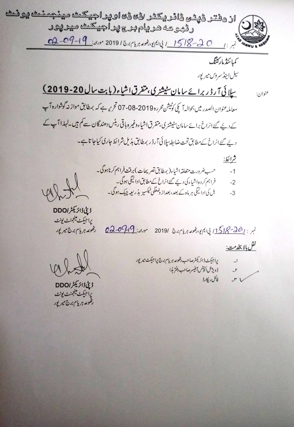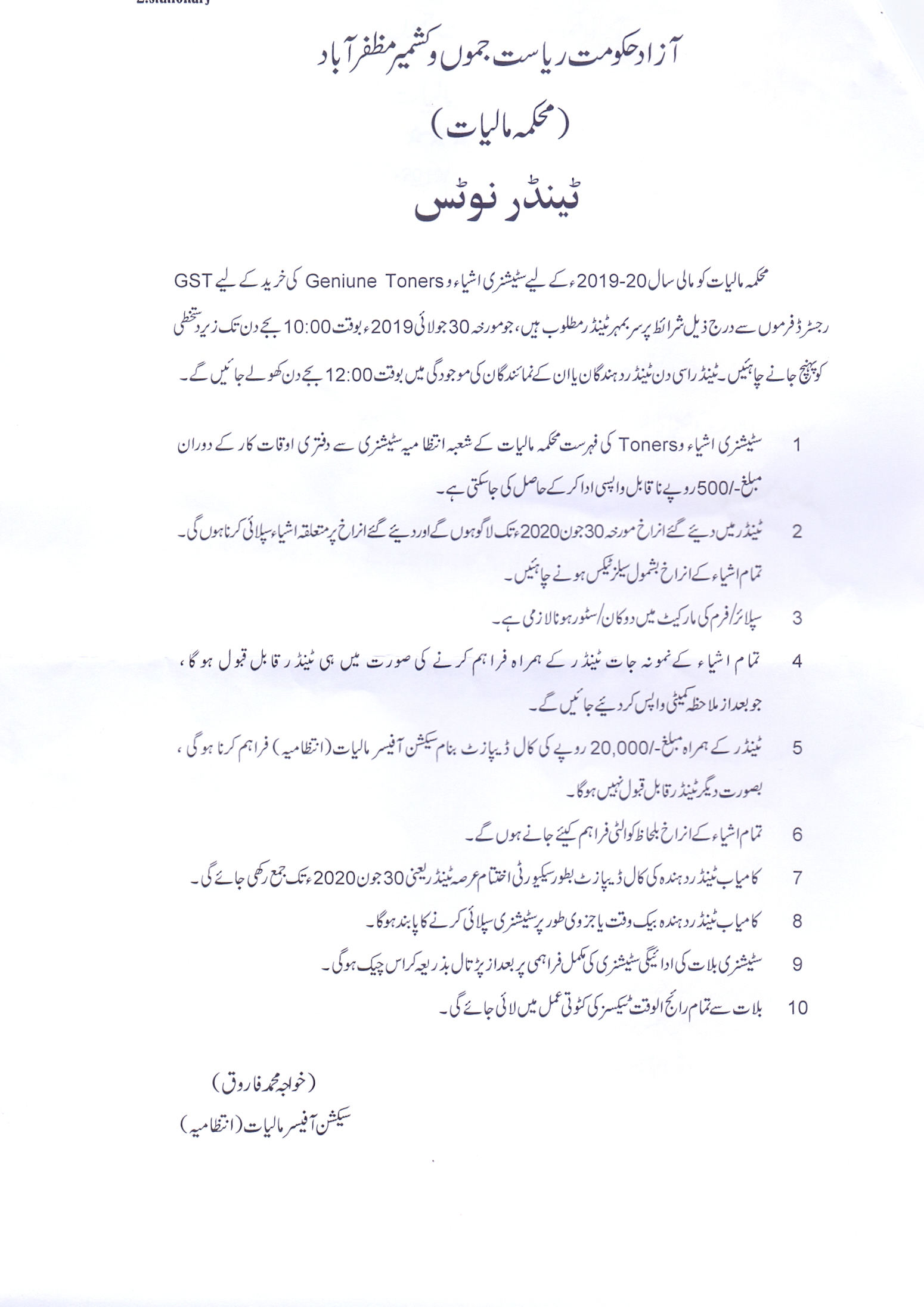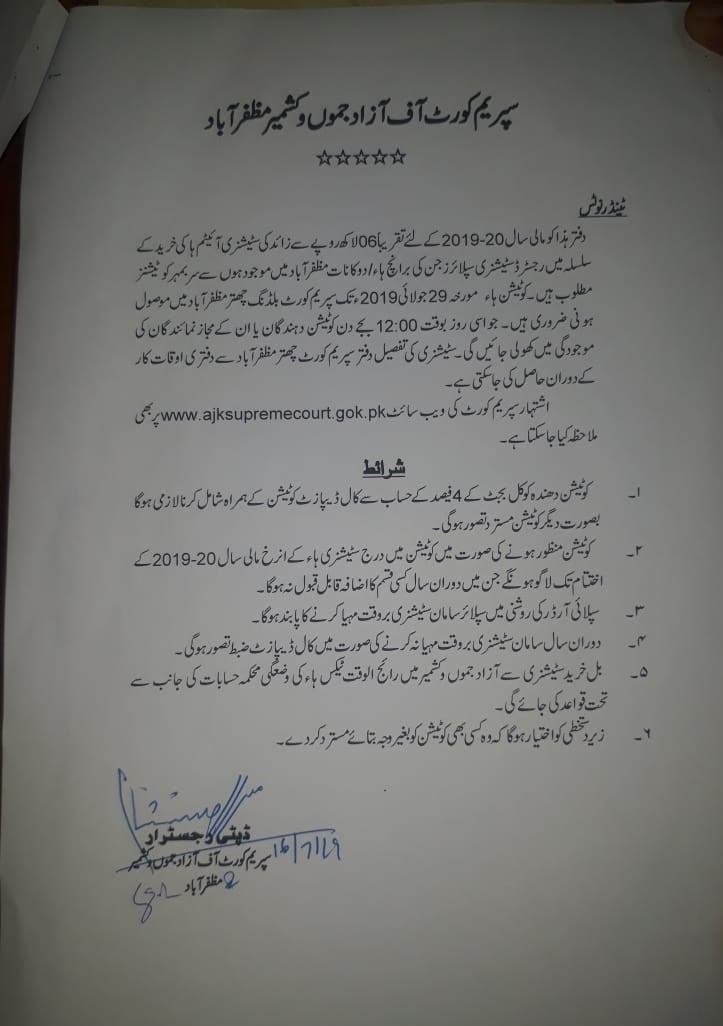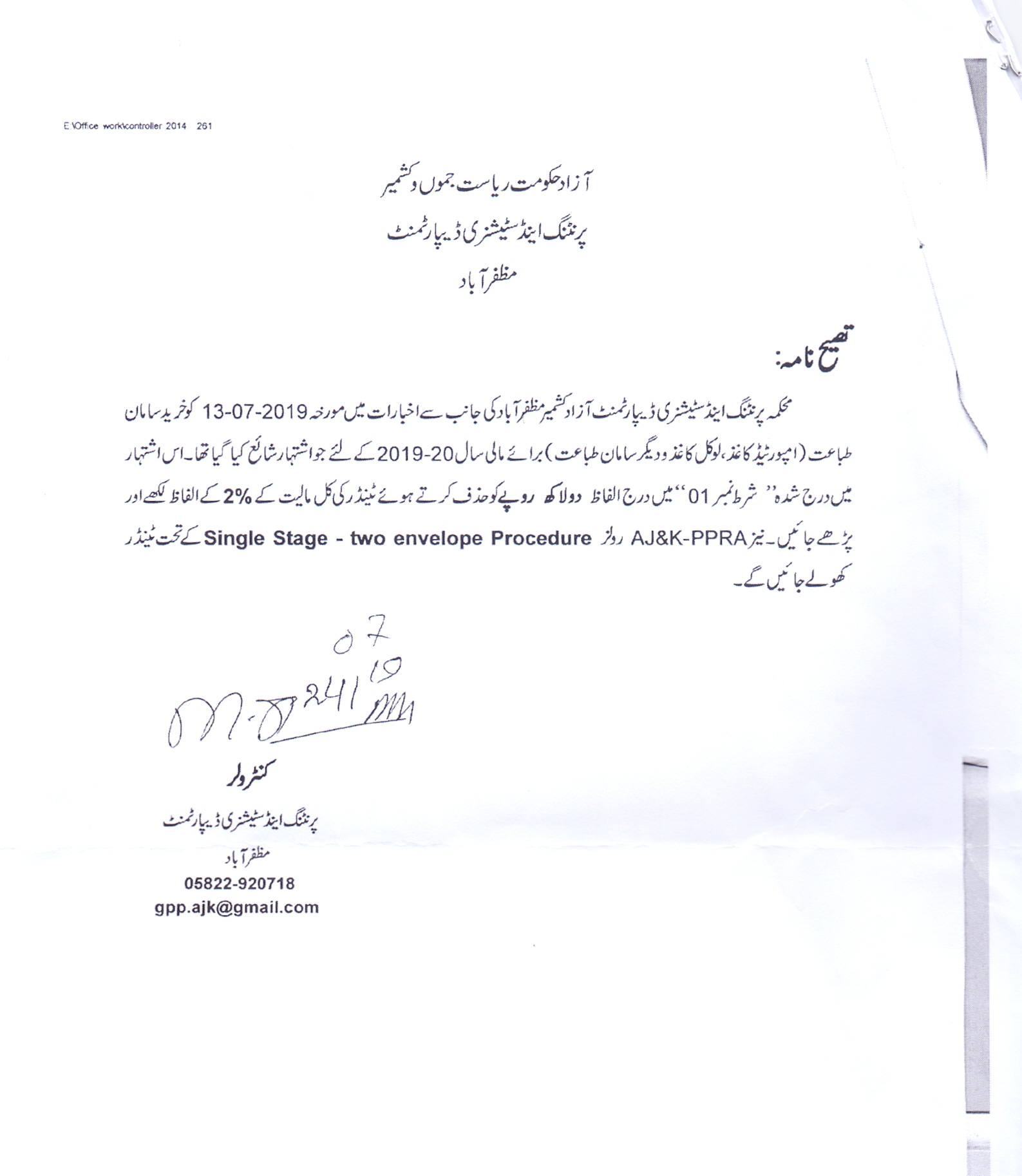 15-07-2019 | 01-08-2019 | Close | Printing and Stationary | Printing and Stationary Muzaffarabad | Download File