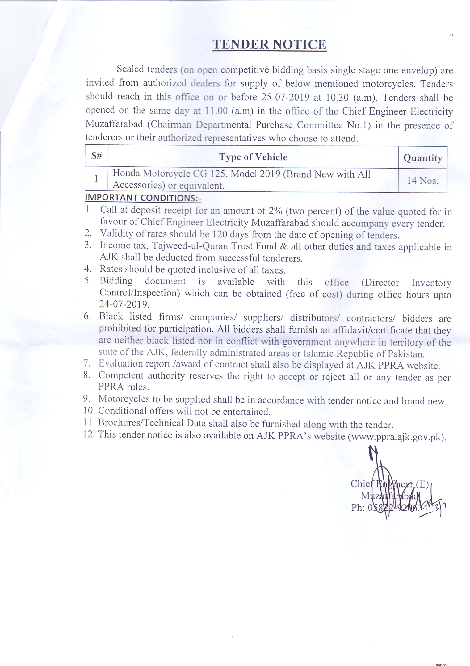 04-07-2019 | 25-07-2019 | Close | Energy and Water Resource | Electricity Muzaffarabad | Download File