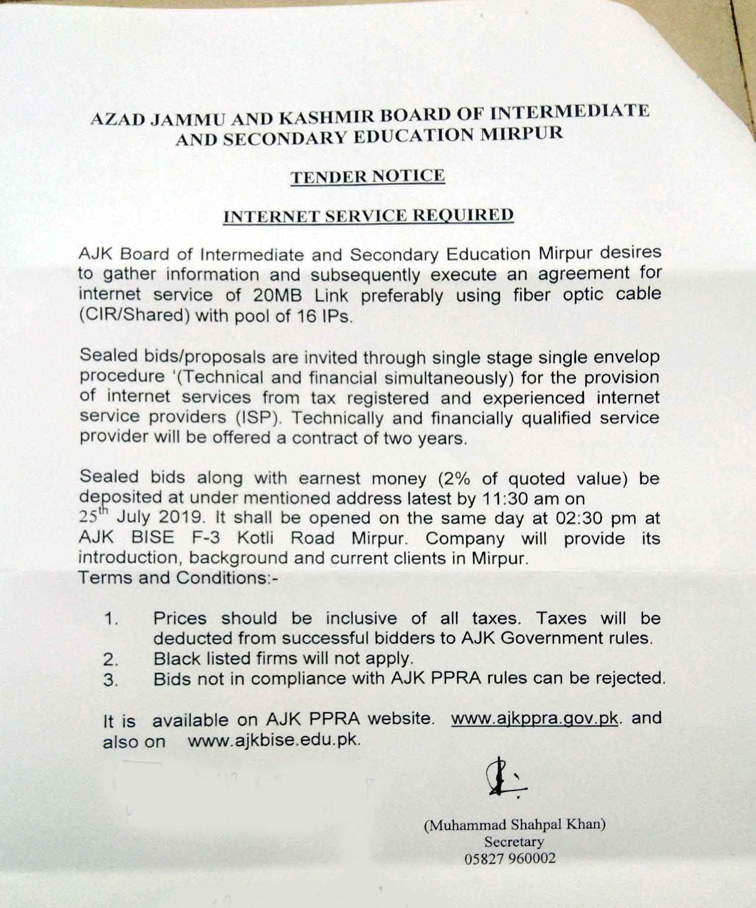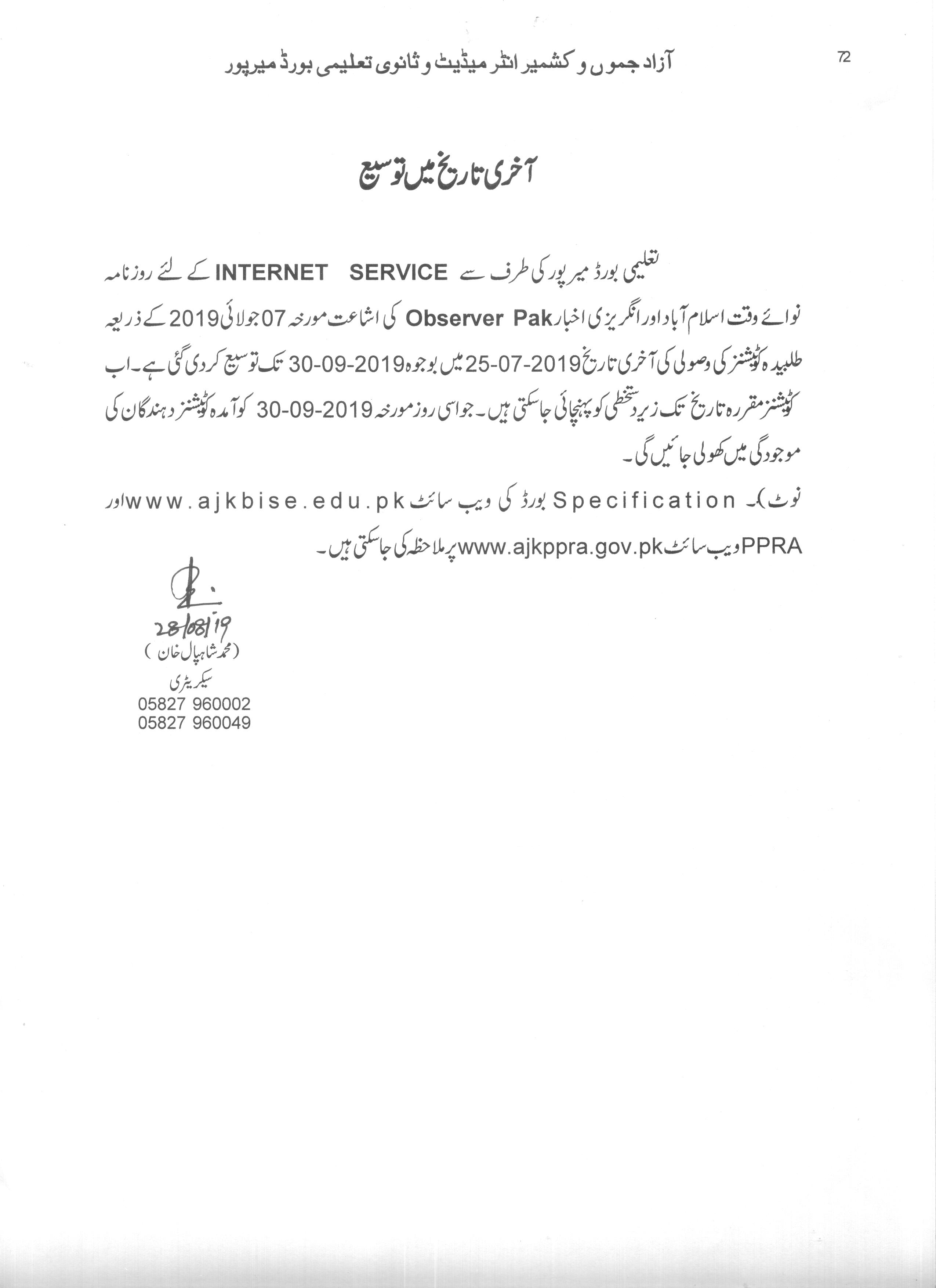 08-07-2019 | 30-09-2019 | Close | Education Department | AJK BISE | Download File