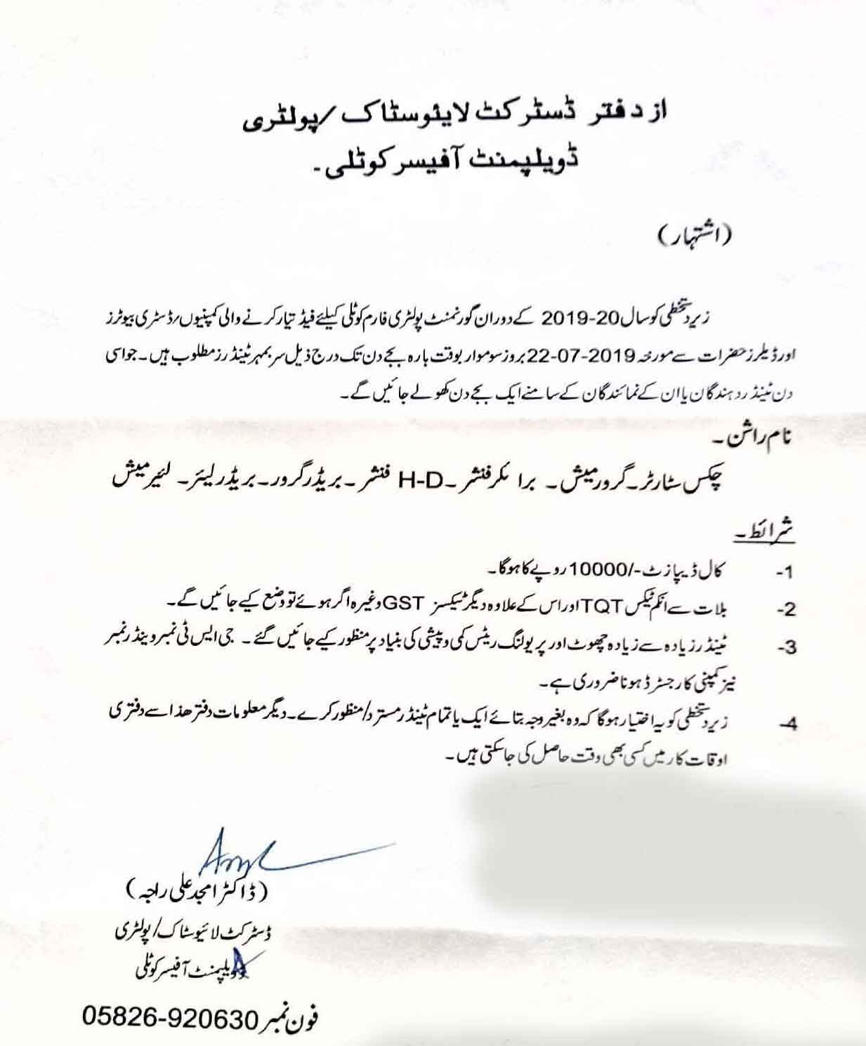 08-07-2019 | 22-07-2019 | Close | Agriculture | Live Stock Kotli | Download File
