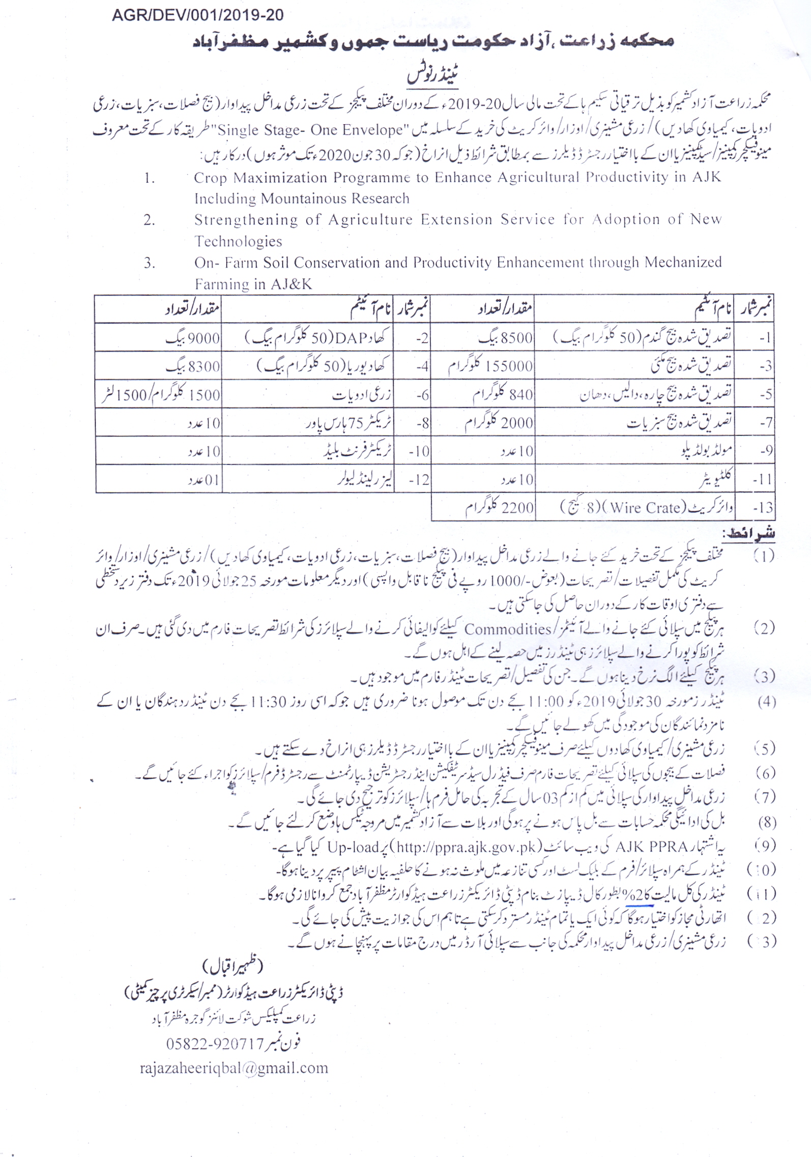 11-07-2019 | 06-08-2019 | Close | Agriculture | Agriculture Muzaffarabad | Download File |
