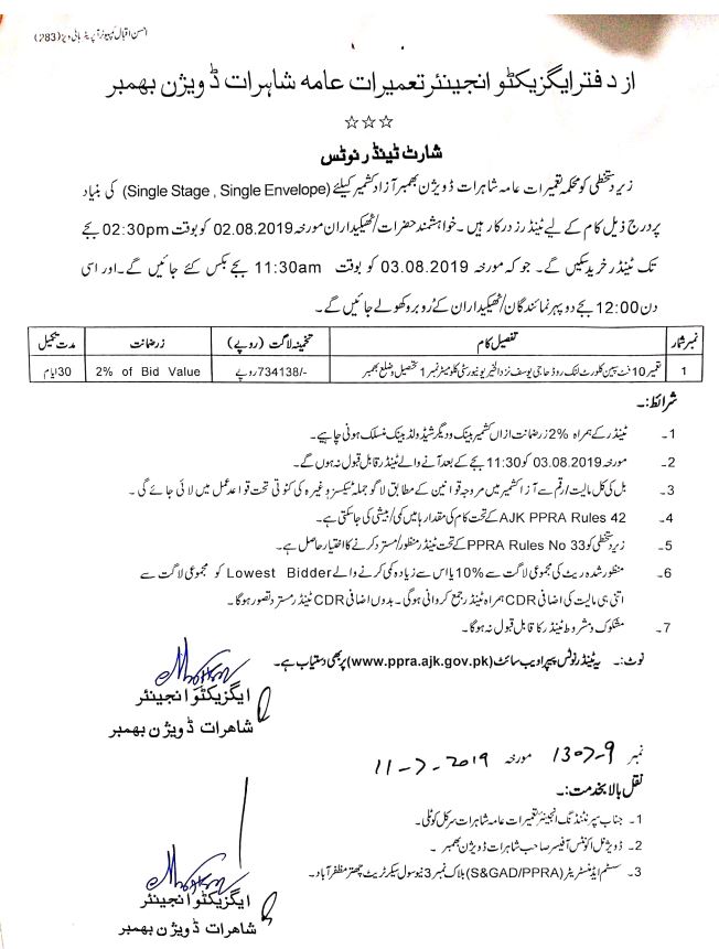 15-07-2019 | 10-08-2019 | Close | C&W | Highways Division Bhimber | Download File |