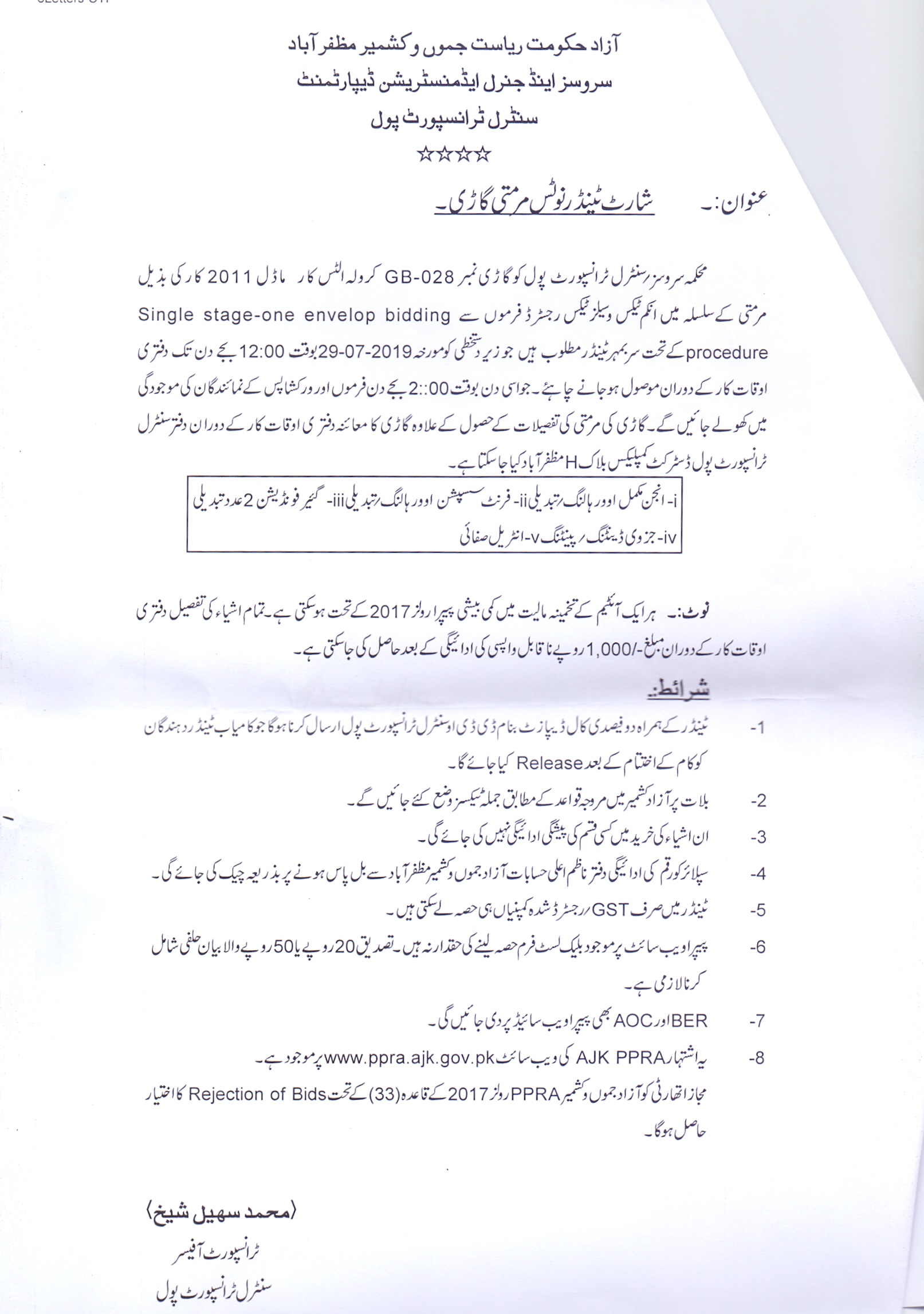 11-07-2019 | 29-07-2019 | Close | Services and General Administration Department | Central Transport Pool | Download File |