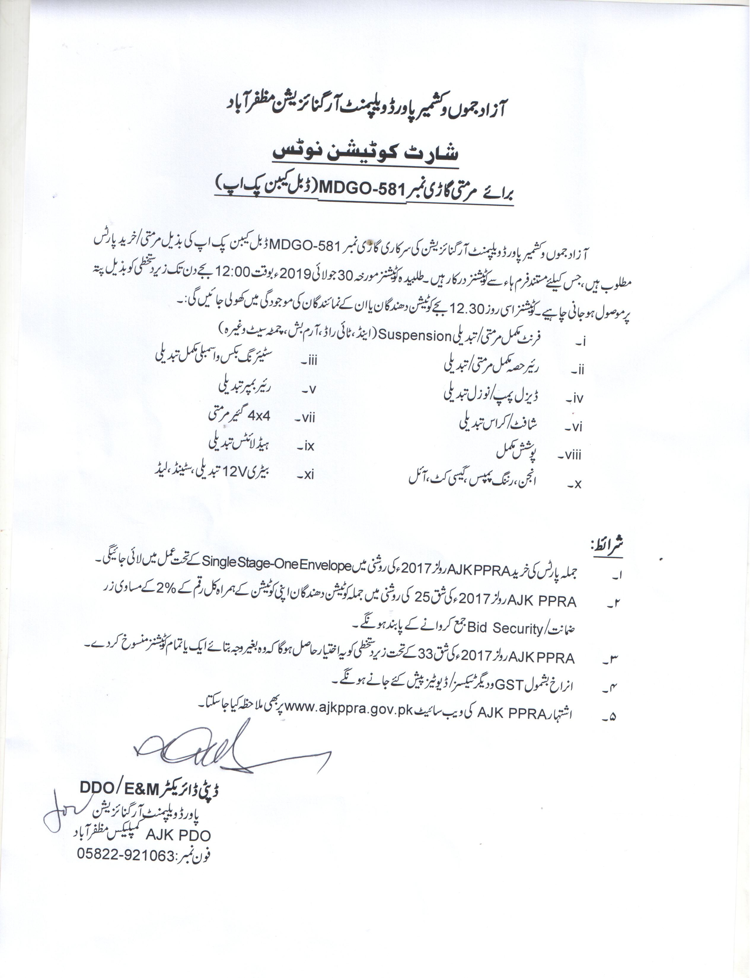 04-07-2019 | 08-07-2019 | Close | AJK PDO | PDO Muzaffarabad | Download File |