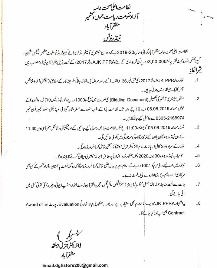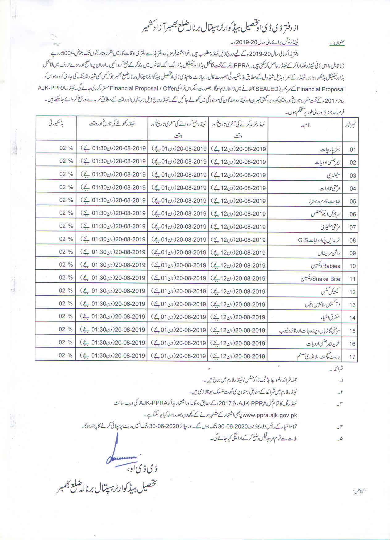 15-07-2019 | 05-08-2019 | Close | Health Department | Health Muzaffarabad | Download File