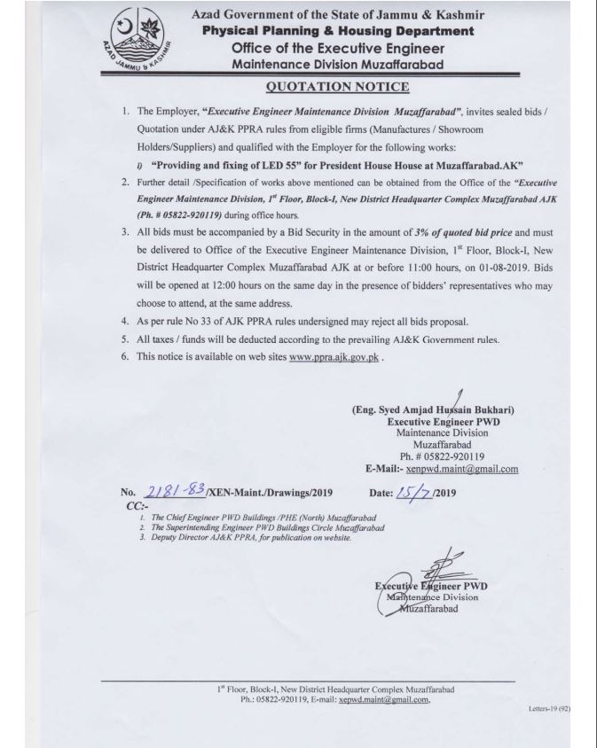 17-07-2019 | 05-08-2019 | Close | AJK PDO | PDO Muzaffarabad | Download File |