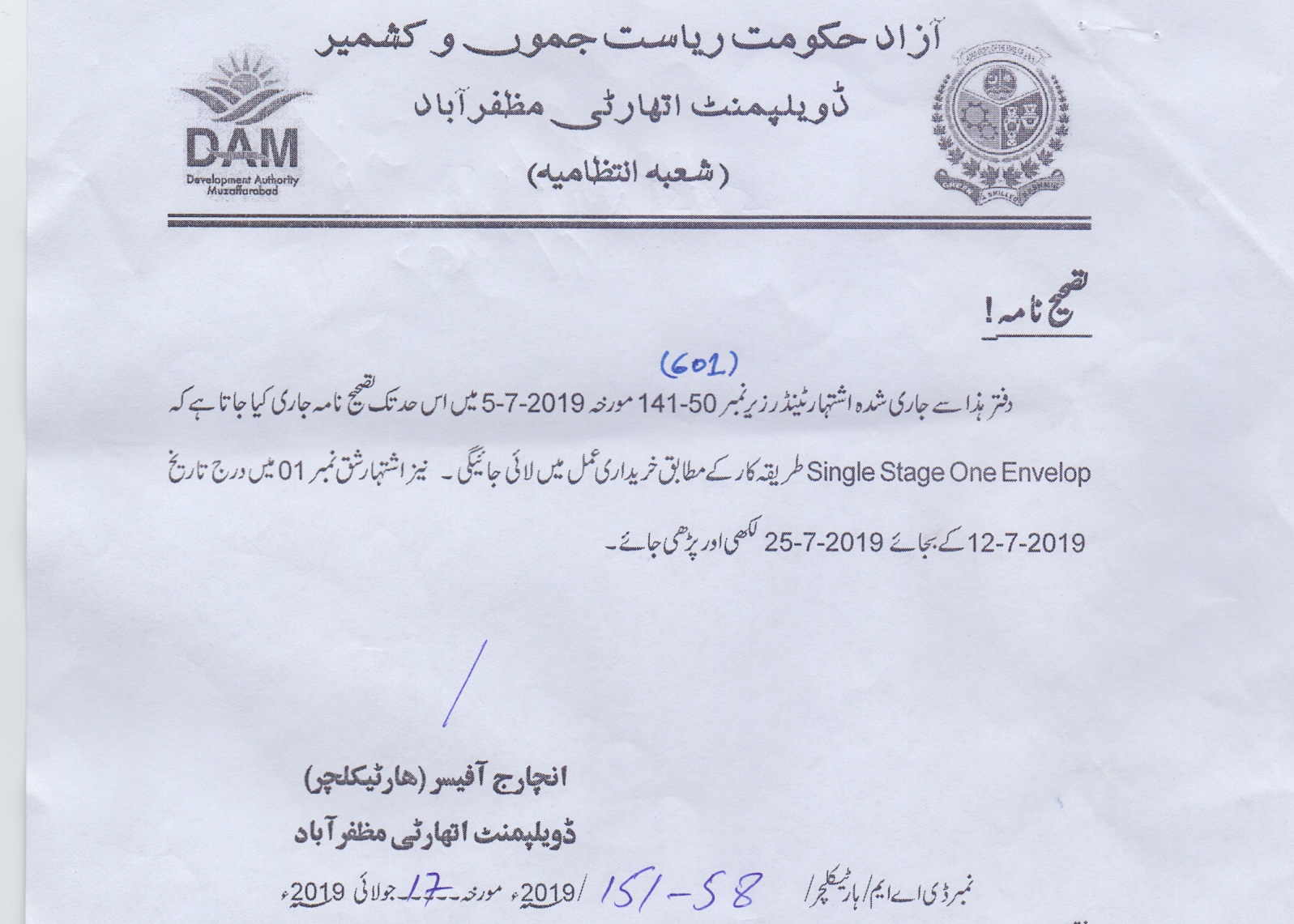 11-07-2019 | 26-07-2019 | Close | Development Authorities | Development Authority Muzaffarabad | Download File