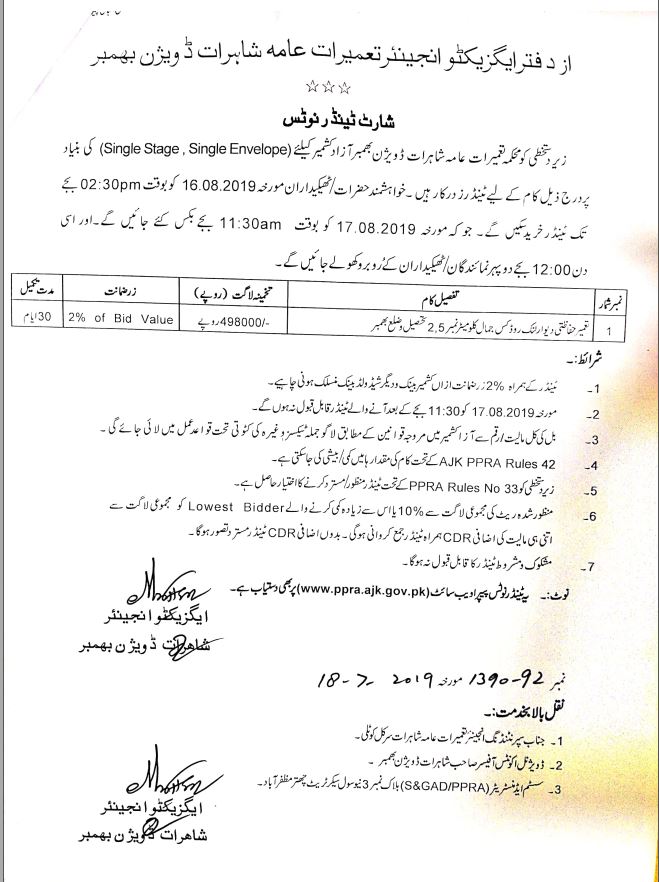 11-07-2019 | 03-08-2019 | Close | C&W | Highways Division Bhimber | Download File |