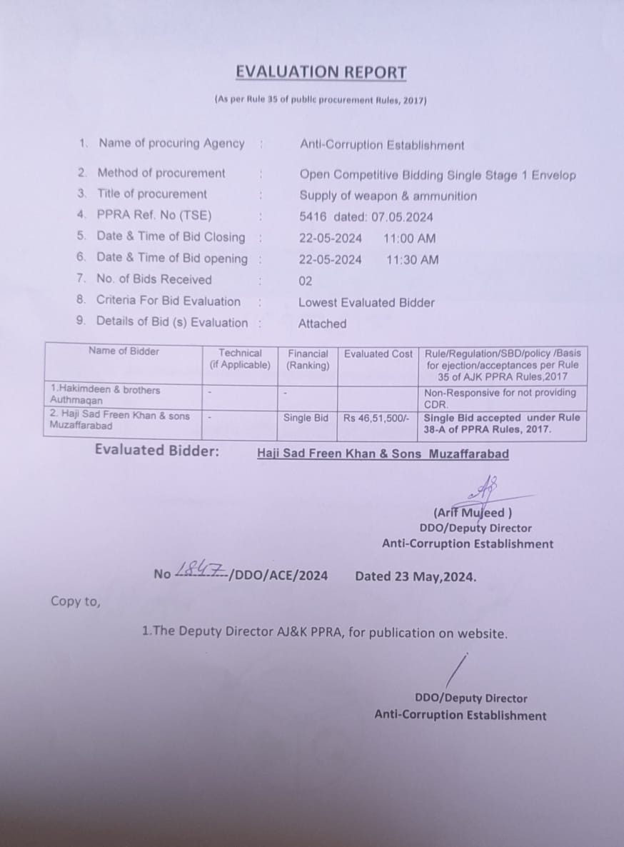07-05-2024 | 22-05-2024 | Close | Anti Corruption Establishment | Anti Corruption Establishment | Download File